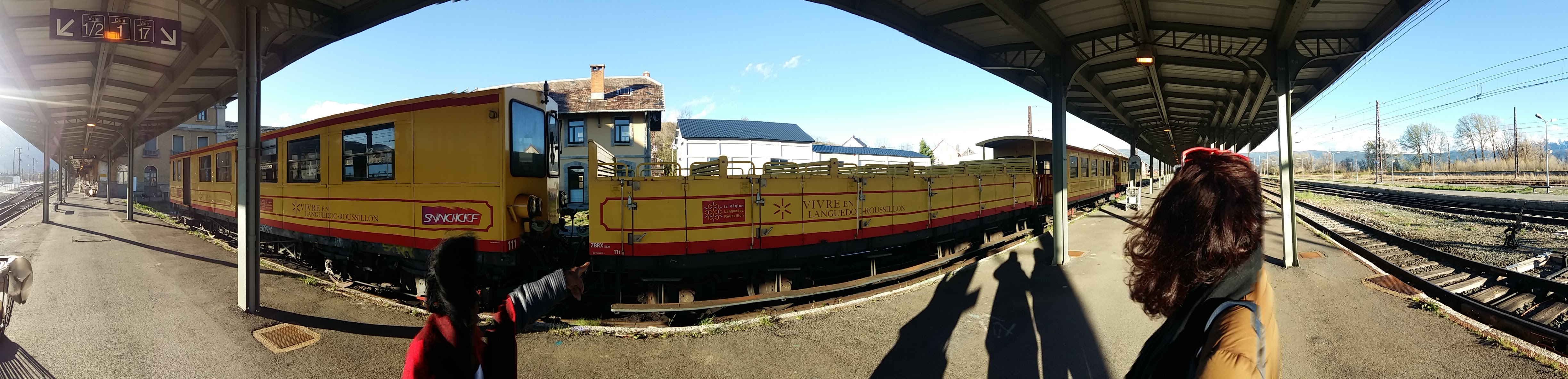 Un petit déjeuner le long de la gare en attendant le train jaune un matin d'août. Vraiment dépaysant.