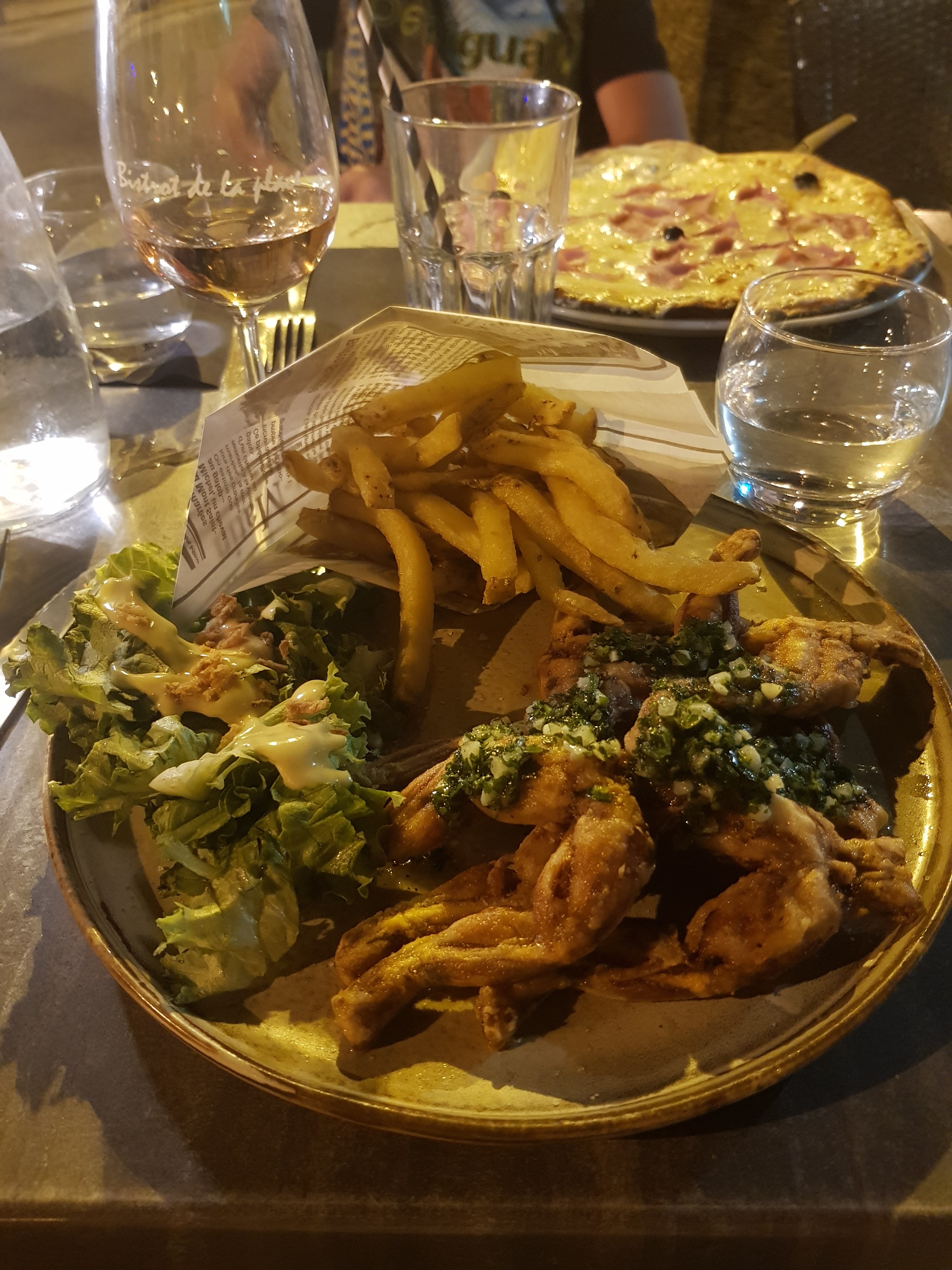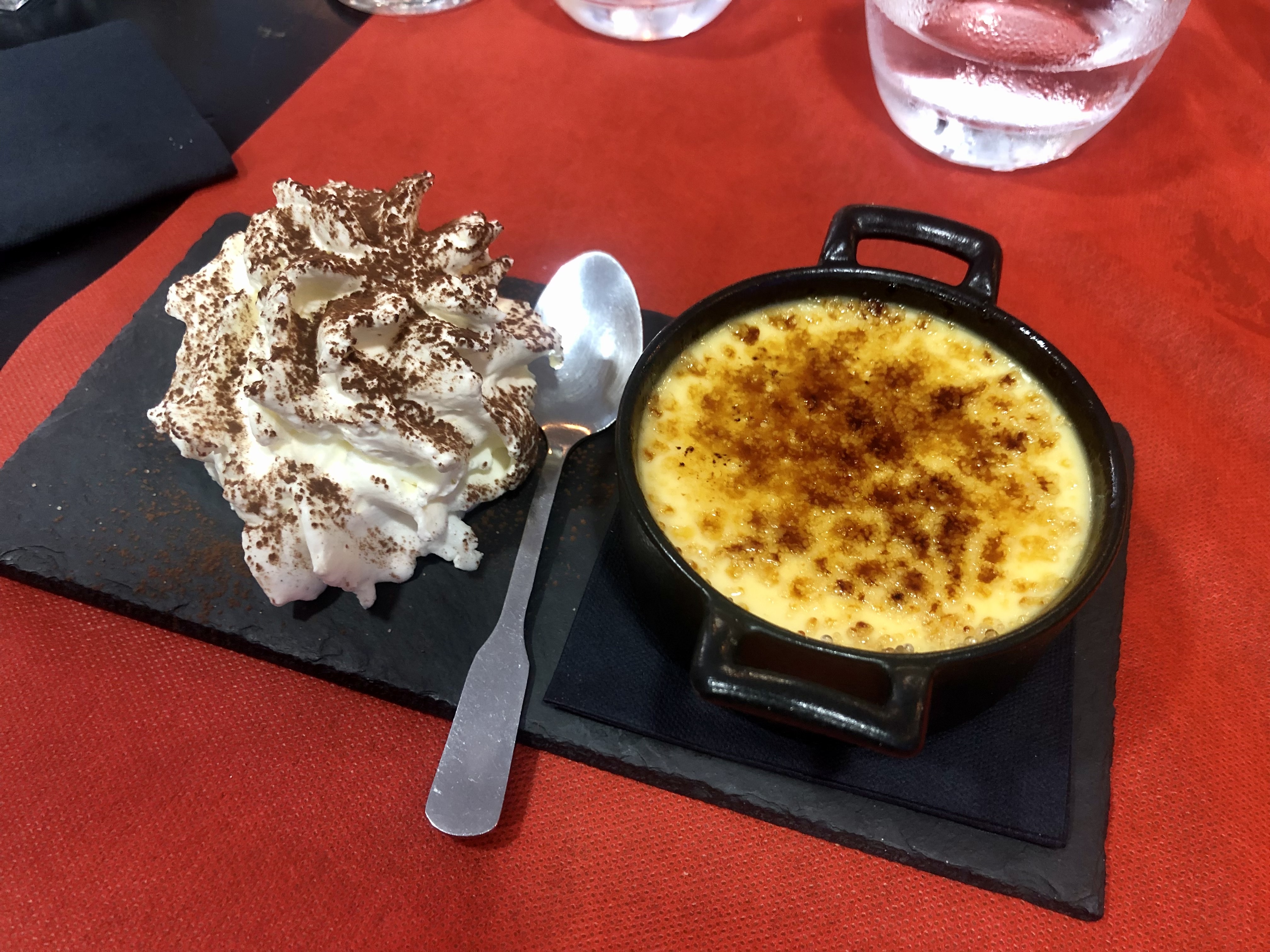 Restaurant chaleureux dans un village typiquement français, c'est à peu près le seul endroit du village où il semble y avoir un peu de vie à cette époque. Rétrospectivement, les tapas « françaises » n'étaient pas le meilleur choix pour nous, une planche avec entre autres du cœur et des foies, ce n'est pas notre truc. Le reste était bon à manger.