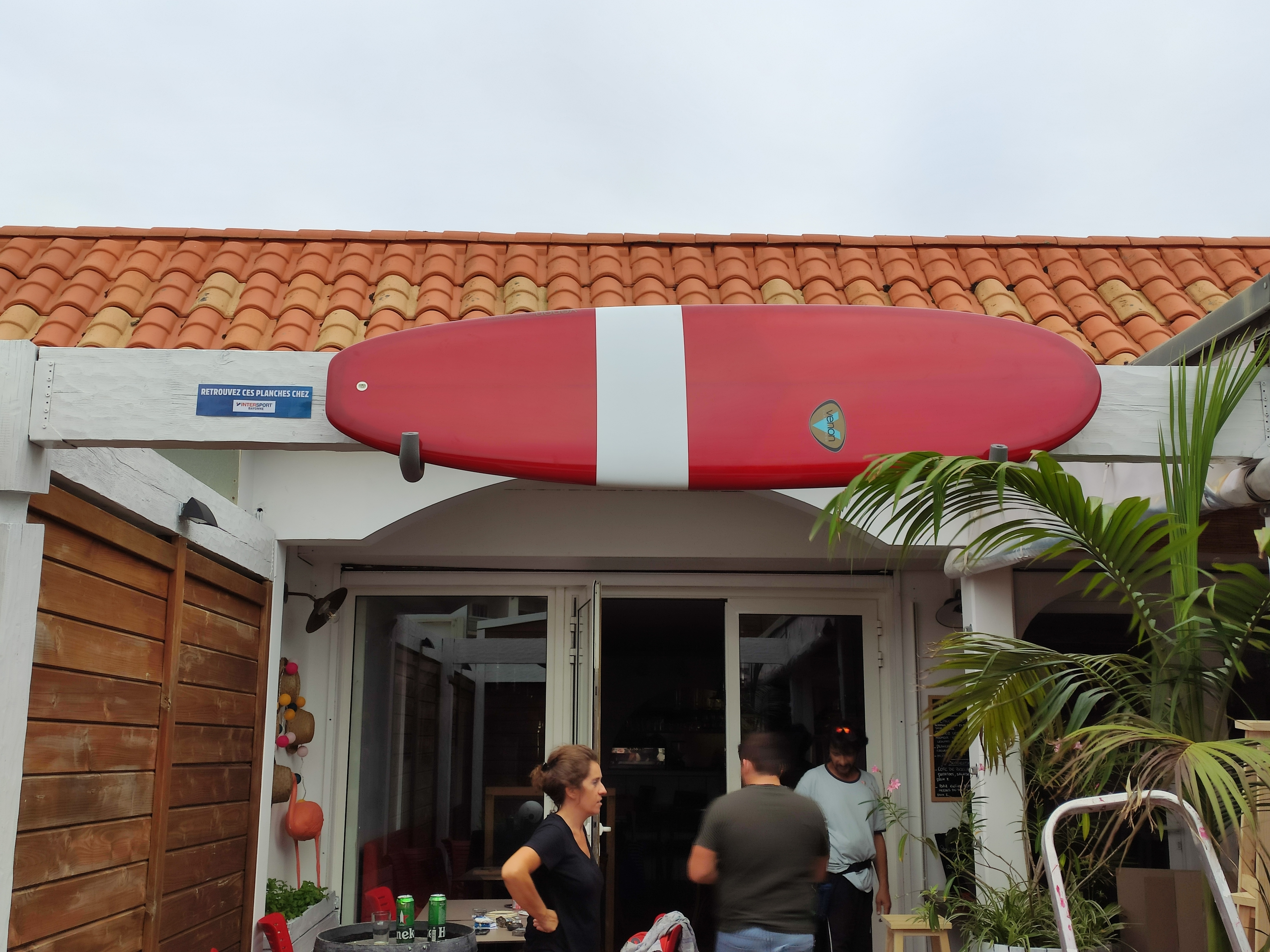 Des plagistes en shorts en tongues s sauf que c est pas l été même si je comprends que c est le look surfeur !! un autre type à l hatitude plus qu étrange qui fait que rentrer et sortir parle tout seul et son chien qui tourne autour des tables bonjour l hygiène sauf qu il servent à manger du coup ça donne pas trop envie de s attabler Bistrot resto ? on sait pas ce que c est !!!