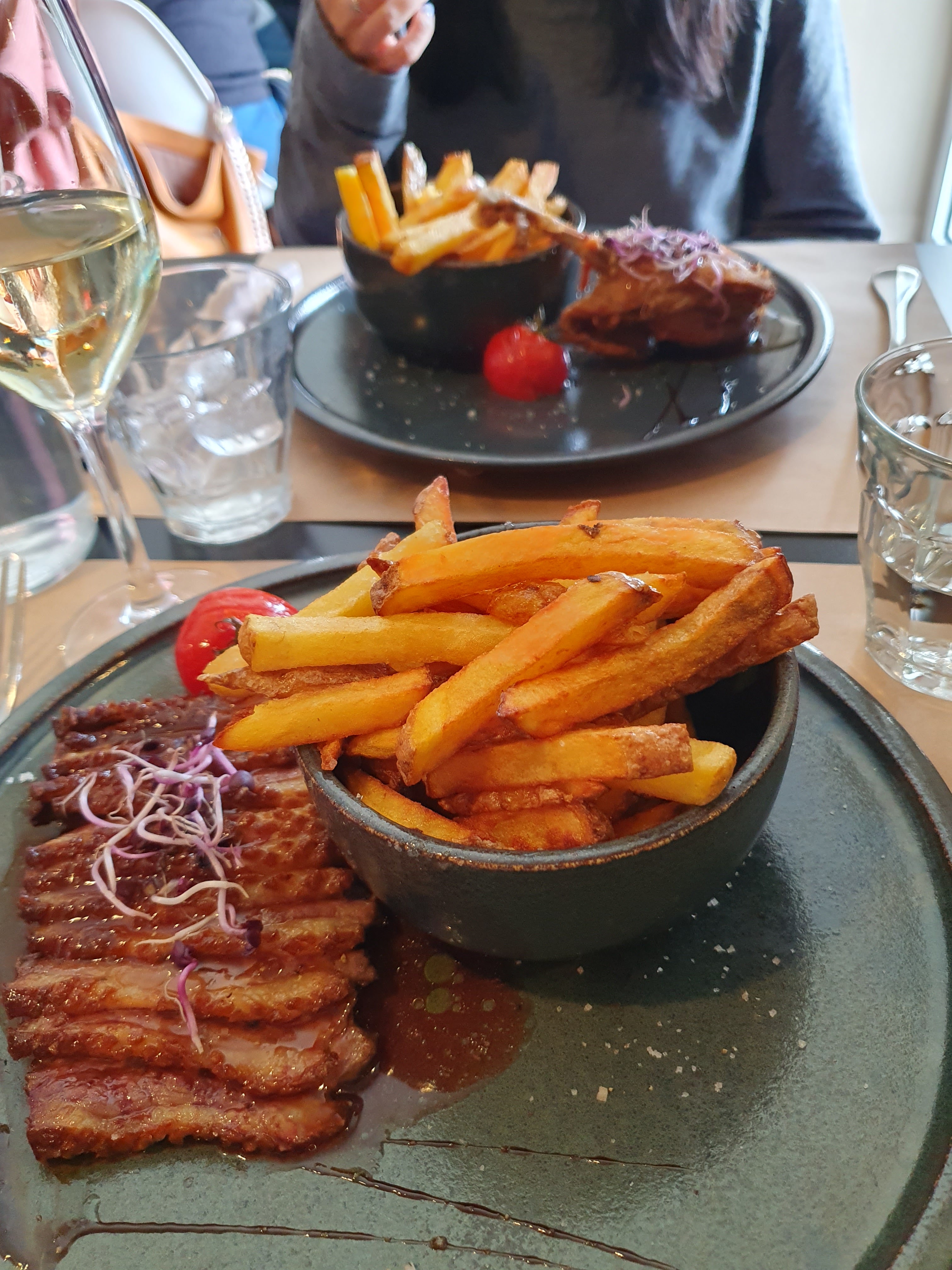 Bon repas maison avec des produits frais (frites et dessert). Personnels sympathiques et professionnels. Belle décoration et terrasse extérieure.