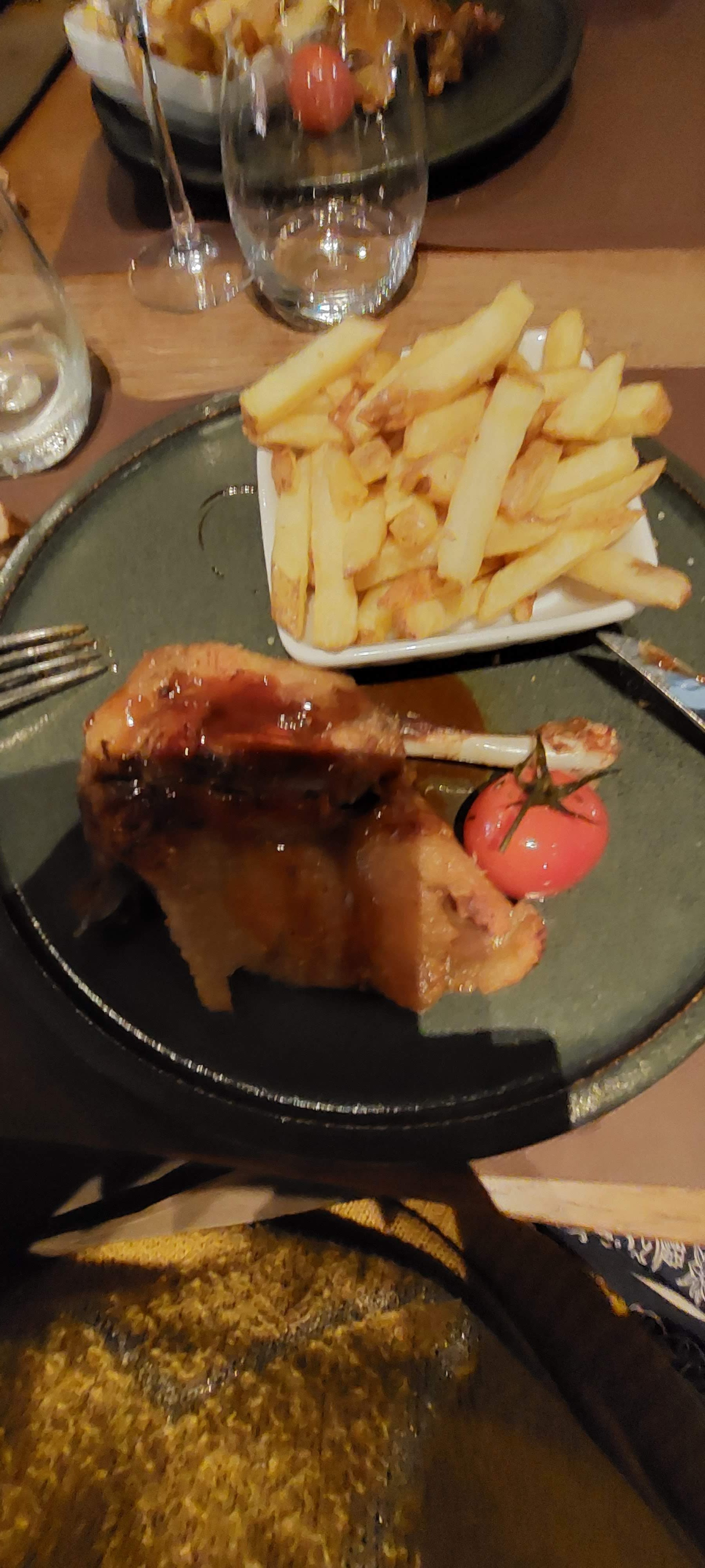L'accueil est agréable. La carte propose des plats du sud-ouest. Il y a plusieurs types de viandes et aussi du poisson. Il existe un plat pour végétariens. J'ai commandé un magret de canard. Il était bon, mais assez difficile à défaire. De plus le couteau n'était pas vraiment adapté (il était à bout rond). Des frites maison pour l'accompagnement. Elles étaient bonnes. Avant d'arriver au dessert j'avais encore très faim 😕 Pour ce qui est du dessert, j'ai pris une crème brûlée (accompagnée de glace à la menthe et de crème chantilly) . Aussitôt arrivée, j'ai du la faire renvoyer en cuisine car le sucre n'était pas caramélisé ! Concernant les tarifs : 15 euros pour le confit et 6 euros la crème brûlée. Au final ce moment était correct, mais j'avoue ne pas avoir eu envie d'y retourner.