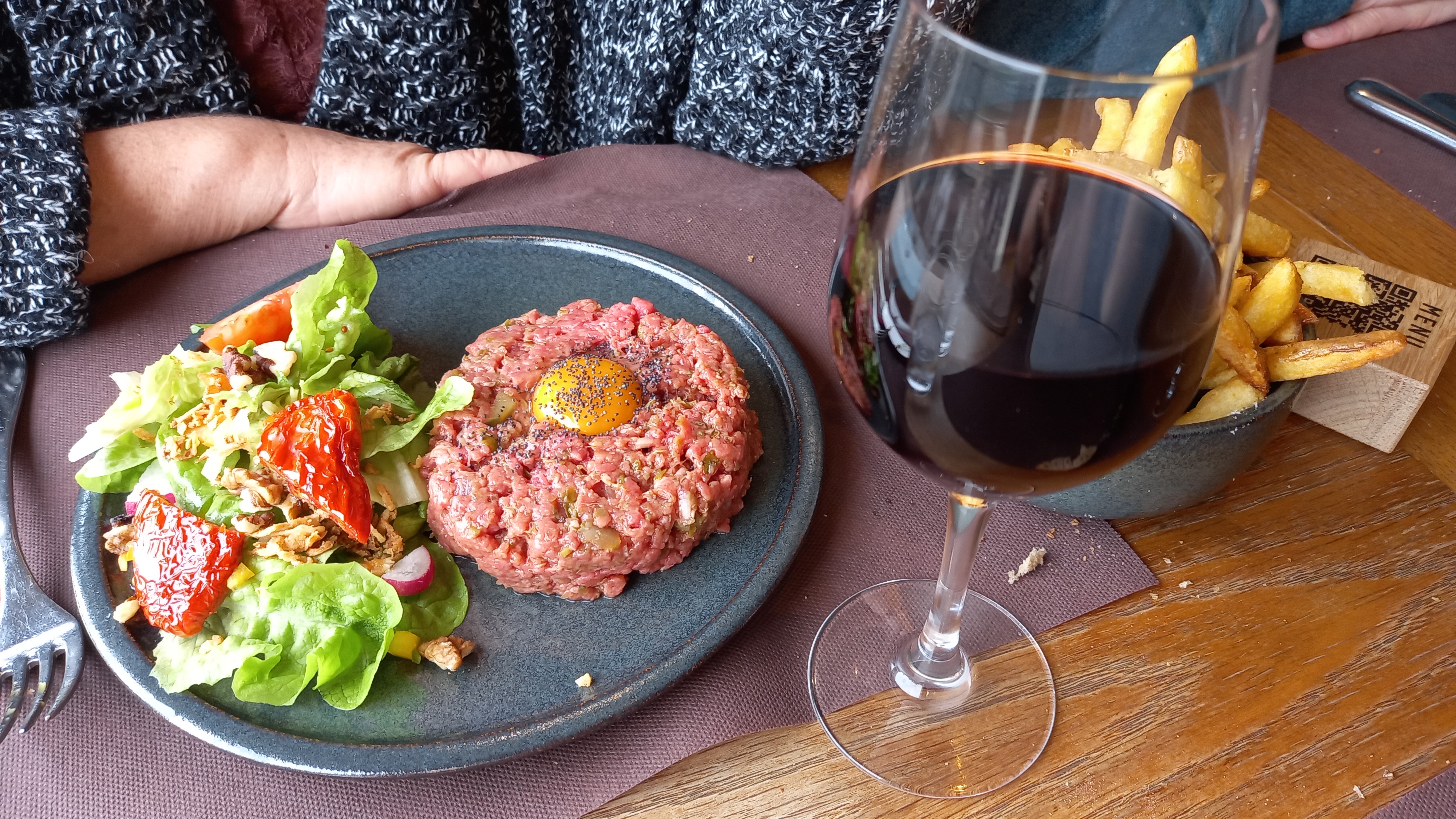 Déjeuner ce jeudi 2 mai cette fois j'ai choisi le tartare accompagné de frites maison et salade très copieux je n'avais plus de place pour le dessert. Ce sera pour la prochaine fois Personnel toujours à l'écoute et compétent . Il y avait beaucoup de monde et pas d'attente Je recommande vivement La réservation à n'importe quelle heure sur le site est appréciable