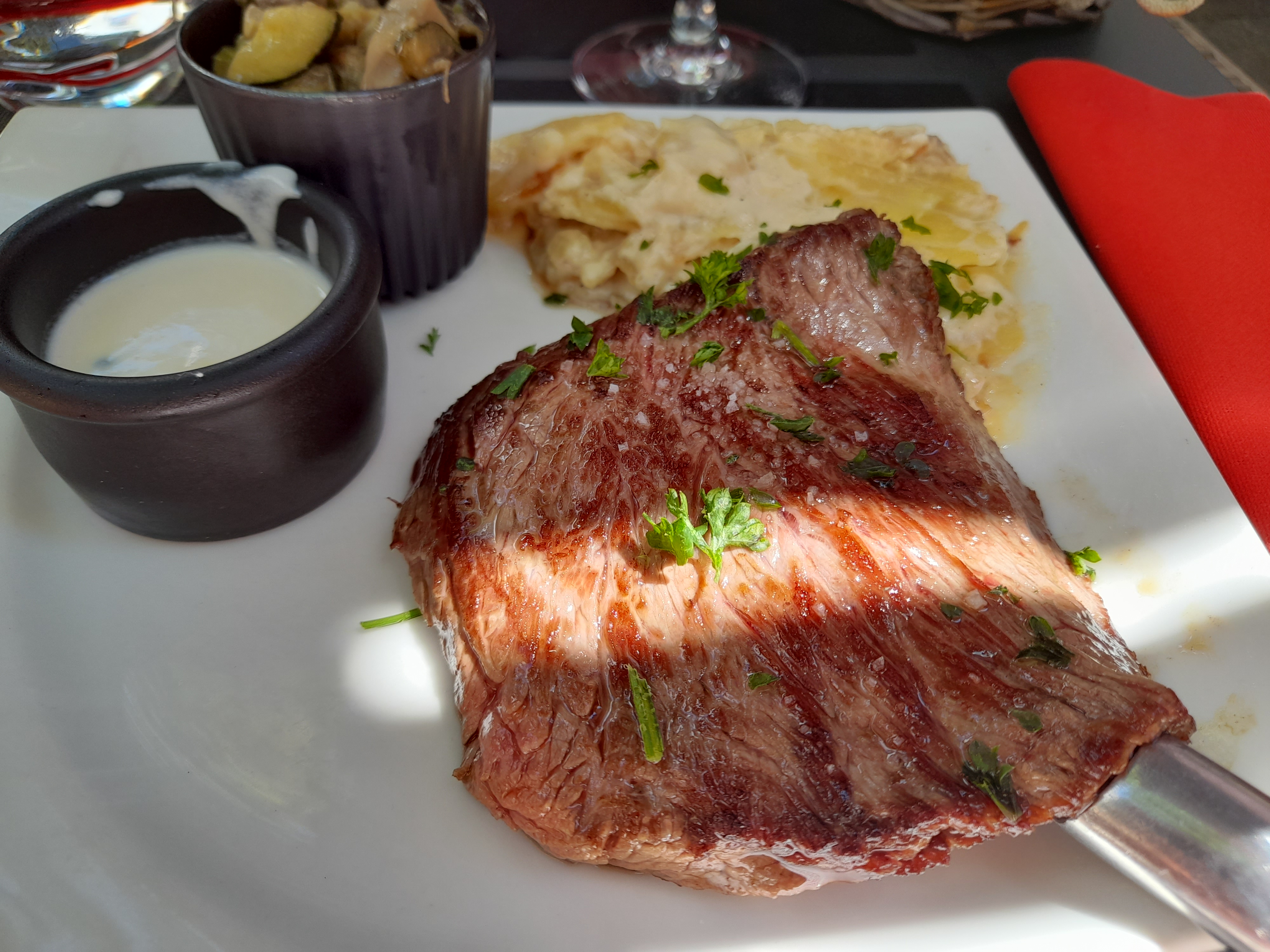 Expérience incroyable - je suis venu là-bas avec ma grand-mère pour le déjeuner le 09/06/2018, le service était gentil et sympathique, le serveur m'a aidé à comprendre ce qu'est réellement une «poire de beouf». Ils ont volontiers ramené mon steak dans la cuisine pour le cuire un peu plus. (C'était de ma faute si je l'avais mal commandé) - Je suis revenu plus tard pour un café et un Coca, super jusqu'au bout. L'endroit est assez plein à l'heure du déjeuner, vous voudrez peut-être réserver à l'avance. - Phil et Pierre MTX (septembre 2018)