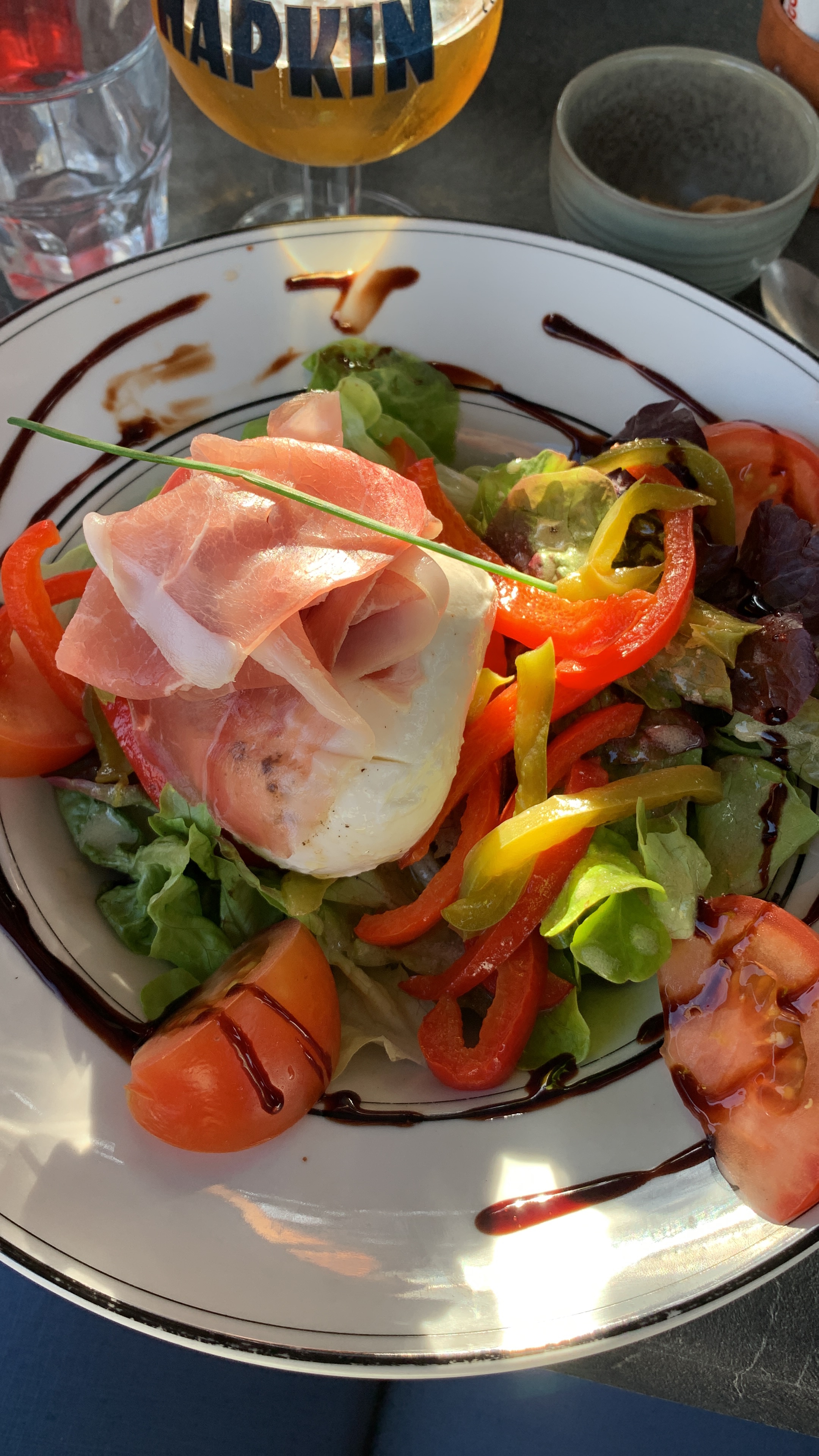 Très sympathique. Terrasse ombragée agréable. Planche de charcuterie, salade italienne et estivale TOP. Et dessert 🍮 crèmet d’Anjou et mousse chocolat maison à conseiller vivement ! J’oubliais les bières pression comprises.