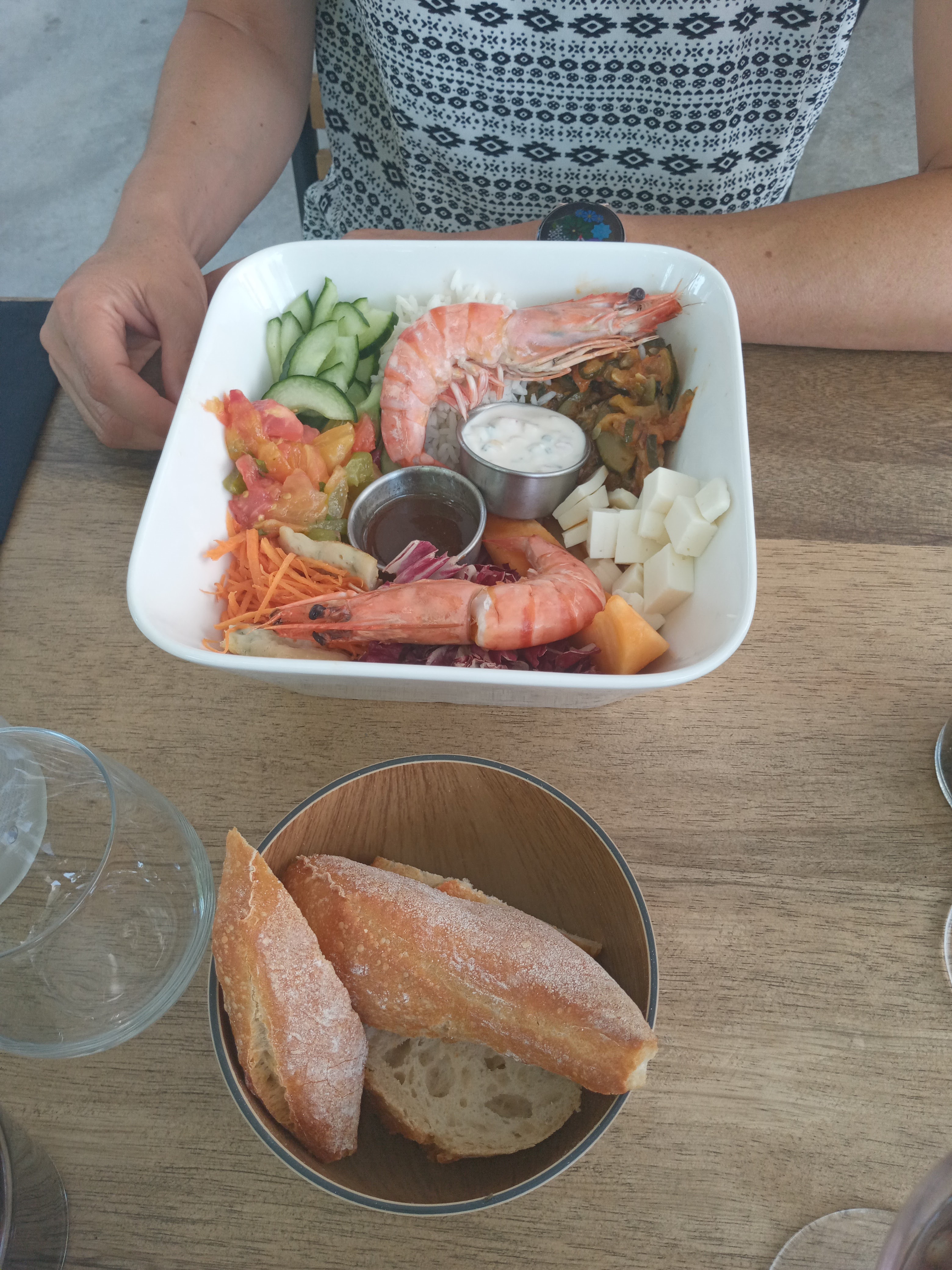 Quelle déception, malgré une carte prometteuse qui me pousse à faire une remarque sur le poke bowl végétal. Sur la même carte on trouve un poke bowl au thon (bonite) qui a exactement la même composition (falafels, poivrons, aubergine, pois chiches, avocat sauce yaourt et vinaigrette) que le poke bowl végétal avec le thon en moins pour ce dernier. Un plat végétal n'est pas un plat habituel auquel on a simplement ôté les protéines d'origine animales et point. J'aurais donc la petite suggestion d'y ajouter, pourquoi pas, un bol de taboulé afin de compenser, ce qui aurait le mérite de varier encore plus, ou de doubler la part de pois chiches. Par ailleurs nous avons trouvé que le tout manquait singulièrement de saveur. Ces remarques, que nous avons fait en direct au responsable du restaurant, n'ont pas semblé trouver une oreille attentive, hors nous les avons suggérées dans le but de voir s'améliorer ce type d'offre, ce qui ne s'improvise pas. A défaut une clientèle de plus en plus nombreuse (touristique ou locale, en ce qui nous concerne) saura faire le tri et tourner les talons lorsque elle aura compris le manque d'engagement que certains restaurateurs montrent à l'égard de la végétalisation dans les assiettes. Ce mode d'alimentation, respectueux de l'environnement, bon pour la santé et pour le bien être animal est une opportunité à saisir pour tous. Il serait dommage d'en louper le train désormais en marche.