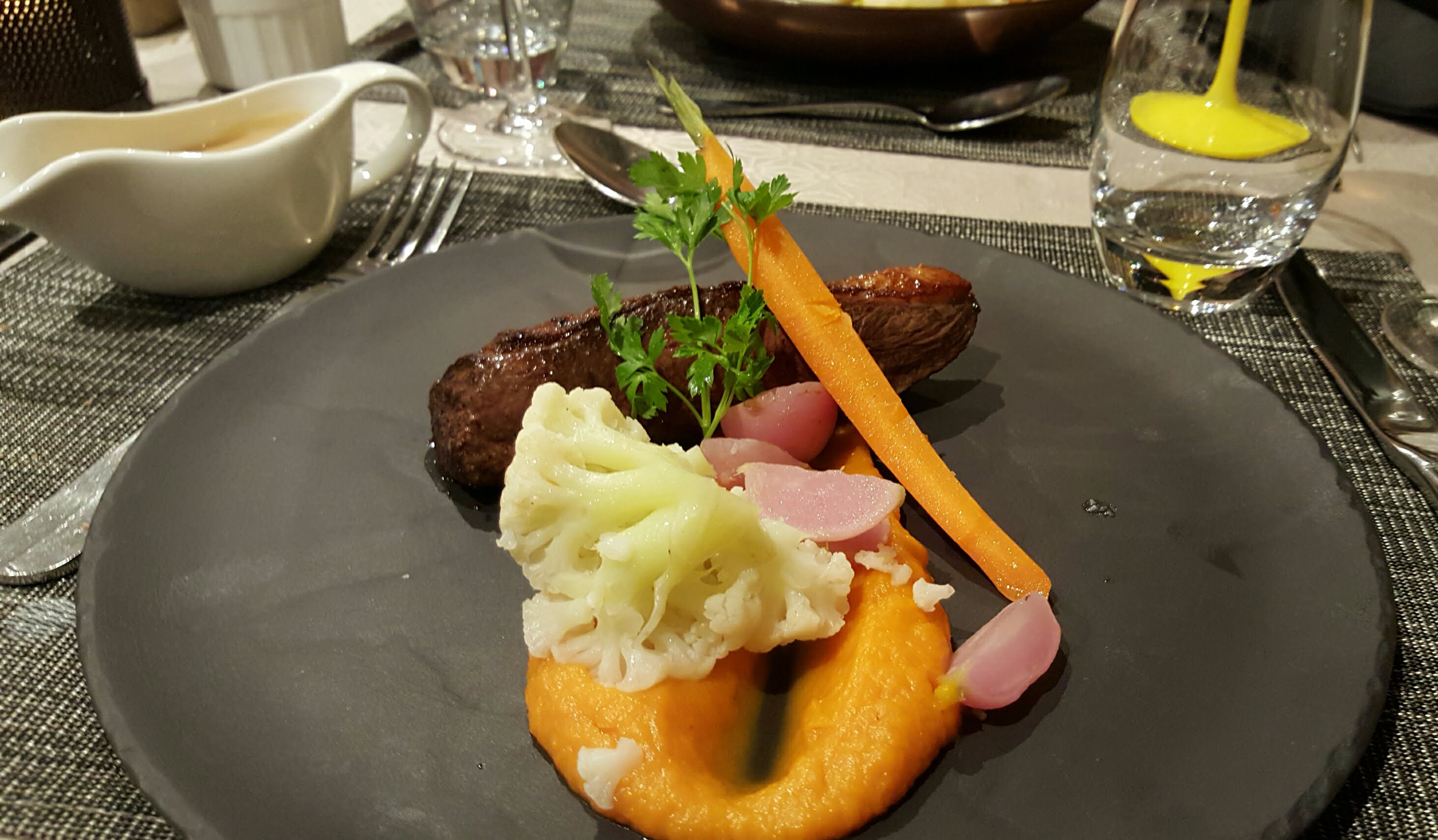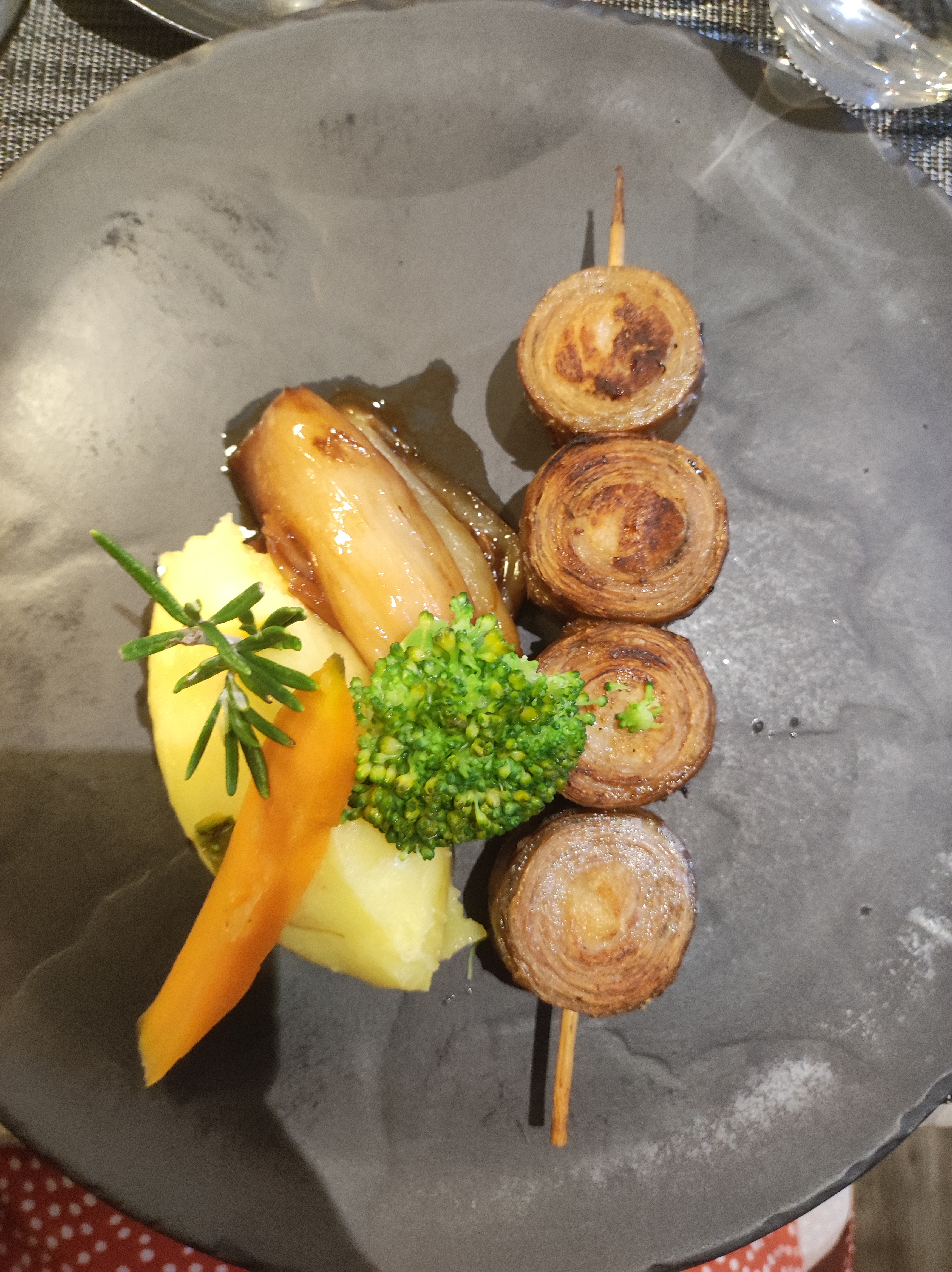 C’est exquis et d’une finesse à se lécher les doigts !… et pourtant ça peut sembler guindé. Laissez-vous aller, c’est délicieux et délicat ! C’est super bon avec des produits de qualités à petits prix. En plus, on vous offre le sourire et la liqueur de cerise ! 😋 … merci 😋 (en plus, je suis végétarien !… belle proposition)