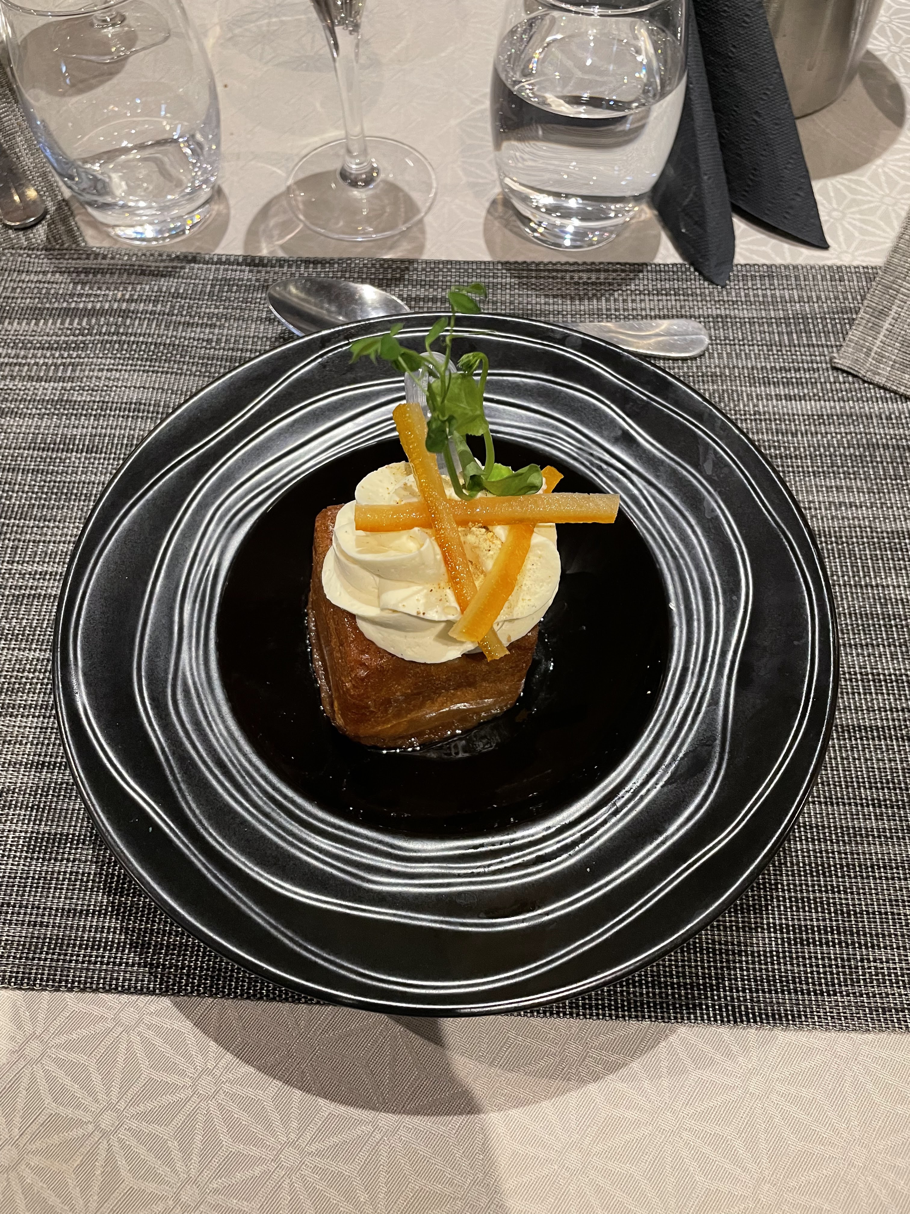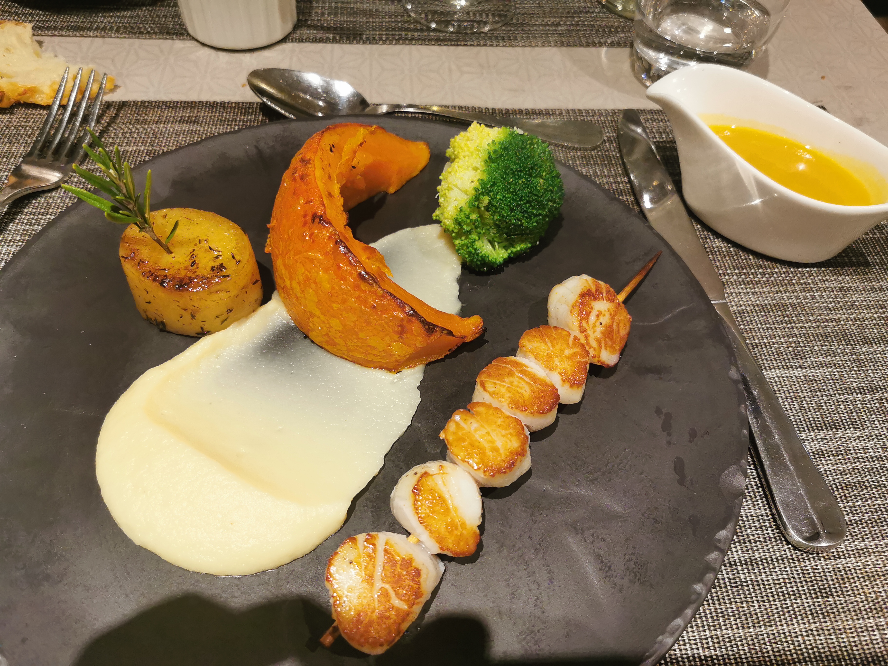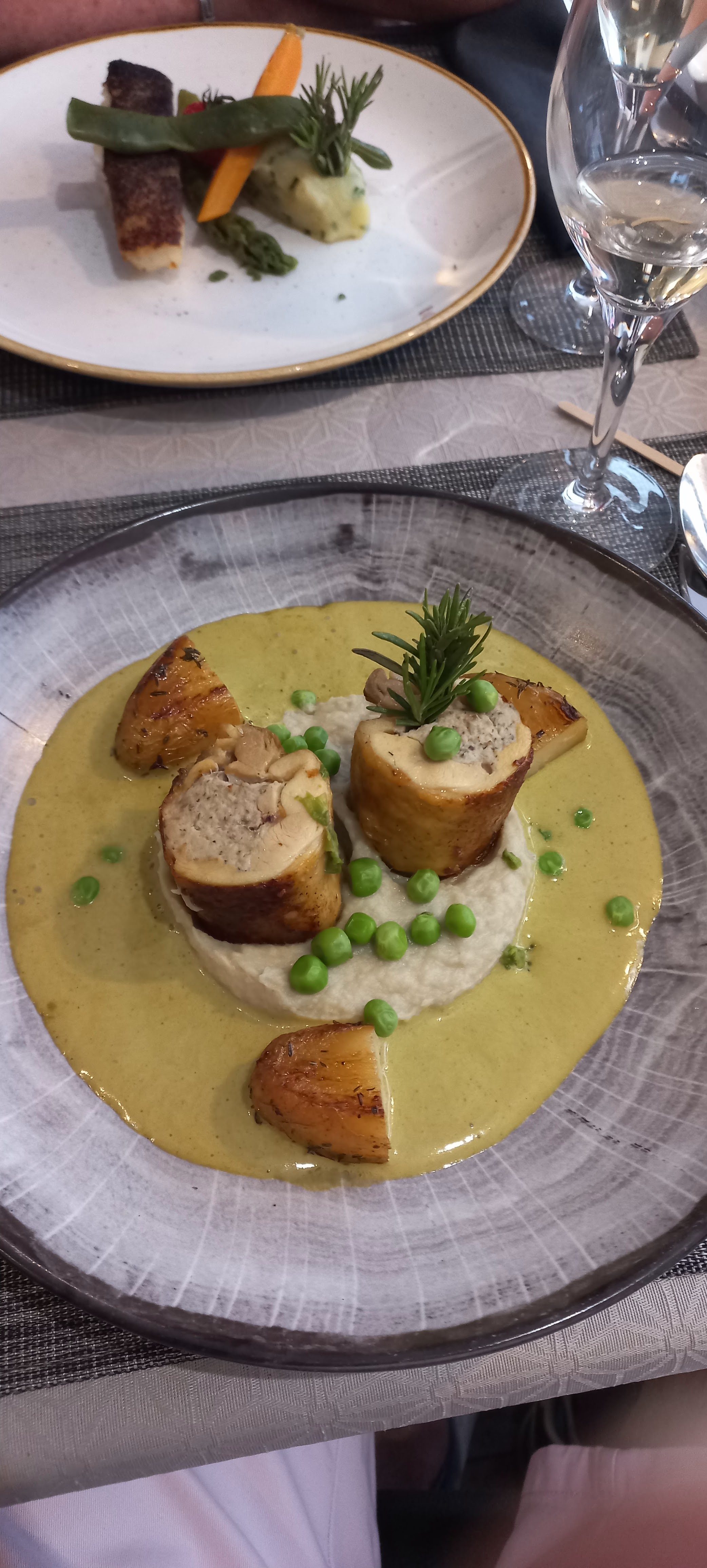 Bonjour et merci à vous. Nous avons adoré de l'entrée au dessert. Foie gras : Super bon, bien assaisonné, manque juste un confit d'oignon pour ceux qui n'aiment pas la figues. La daurade : super bon le poisson était super fin et le soupçon de safran était vraiment le petit plus dans le beurre blanc. La mousse au chocolat : super bon car malgré un chocolat noir à 70% la fleur de sel enlève l'amertume. La crème brûlée : caramel du dessus parfaitement brûlé par contre pas fan de la fève de tonka. Merci encore. Je reviendrai en espérant goûter le suprême de poulet :).