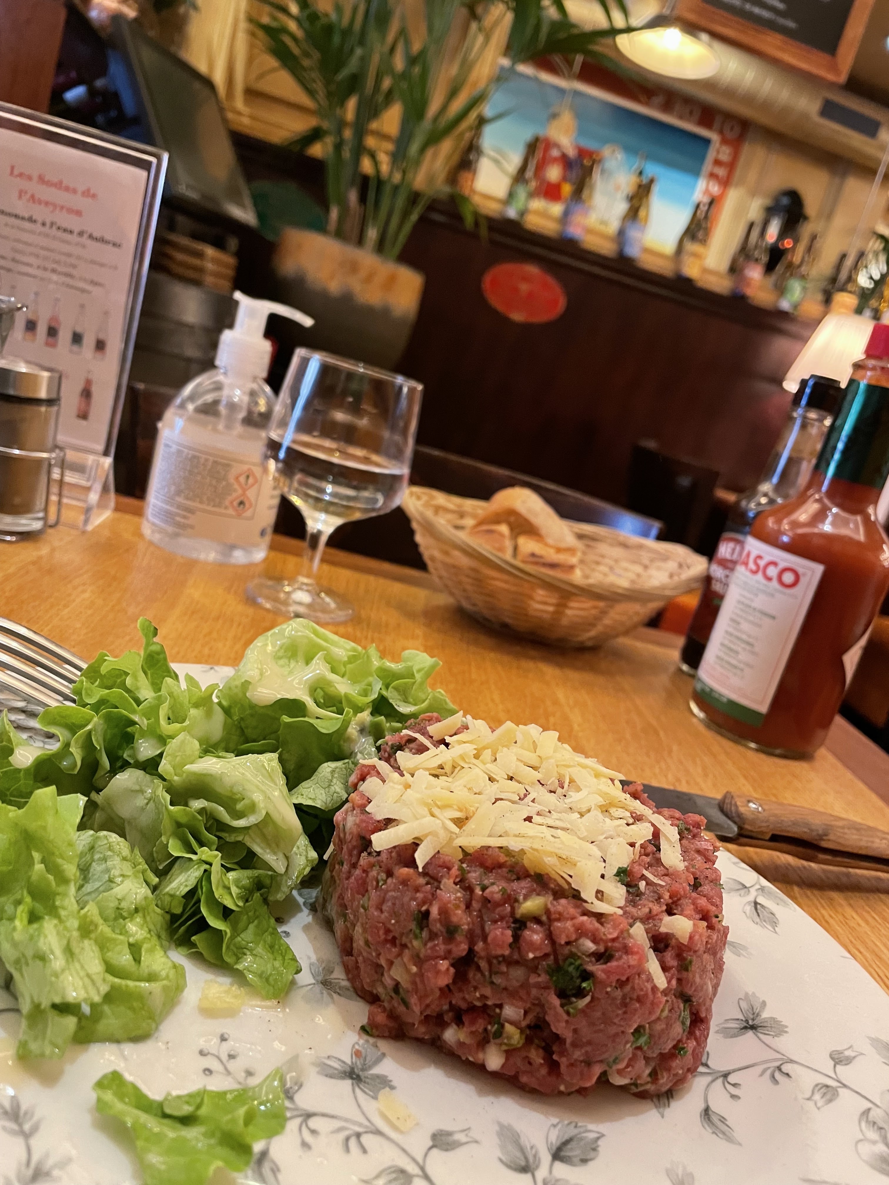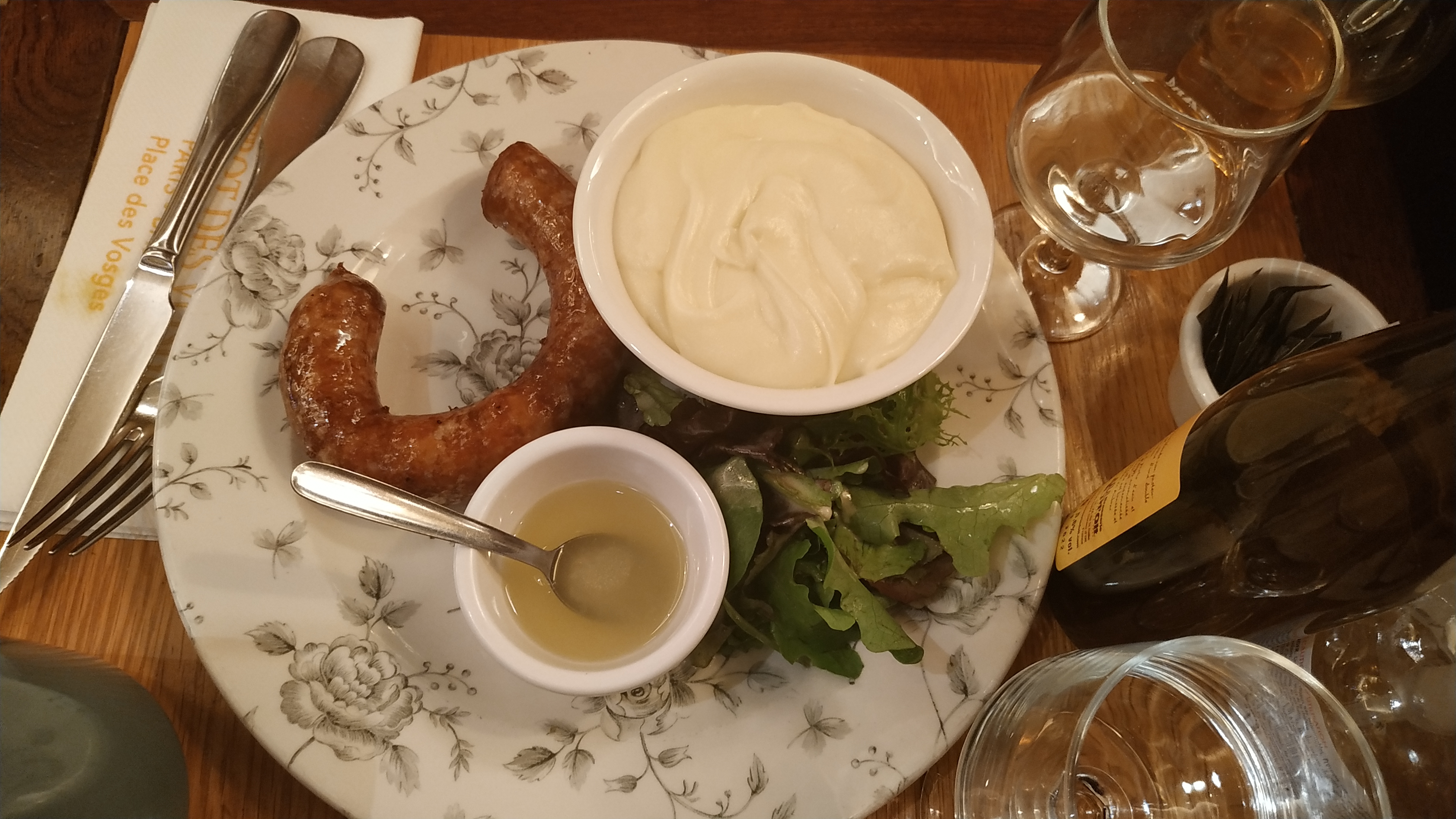 Le cadre du tableau pour nous 2 ce midi..:) la table isolée, qui donne sur la rue du pas de la mule, voir passer les parisiens..:) Quali, quanti, service au top. Gens authentiques et de l'Aveyron... aux portes du Marais, donc contraste sympa! À découvrir définitivement pour amateurs de viandes de la région, mais pas seulement!...