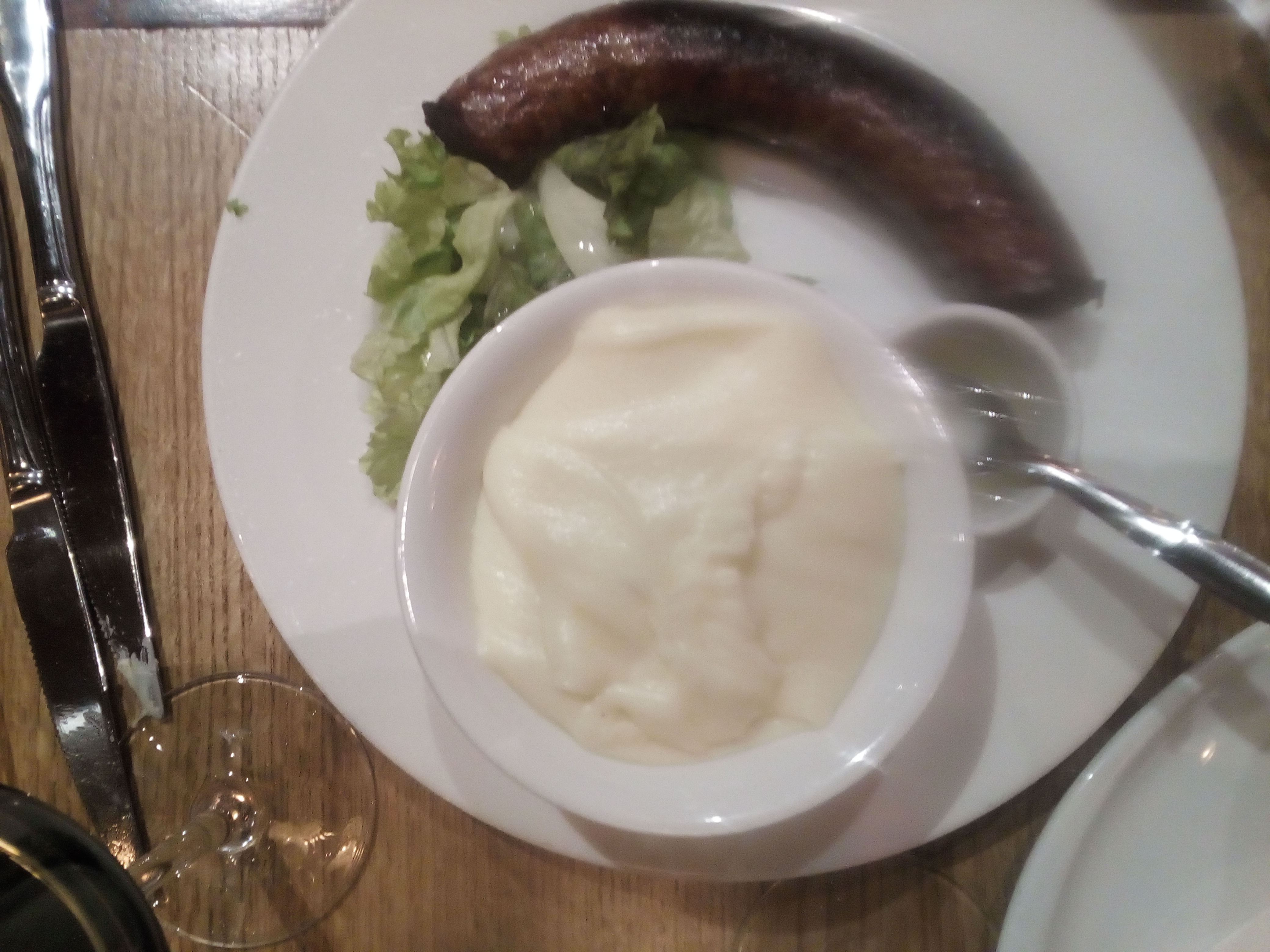 Excellent accueil de la part de notre serveur. Les tables sont espacées ce qui permet de dîner tranquillement. Nous avons pris la saucisse aligot, un régal ! Les portions ne sont pas énormes, nous avions encore de la place pour un dessert 😉