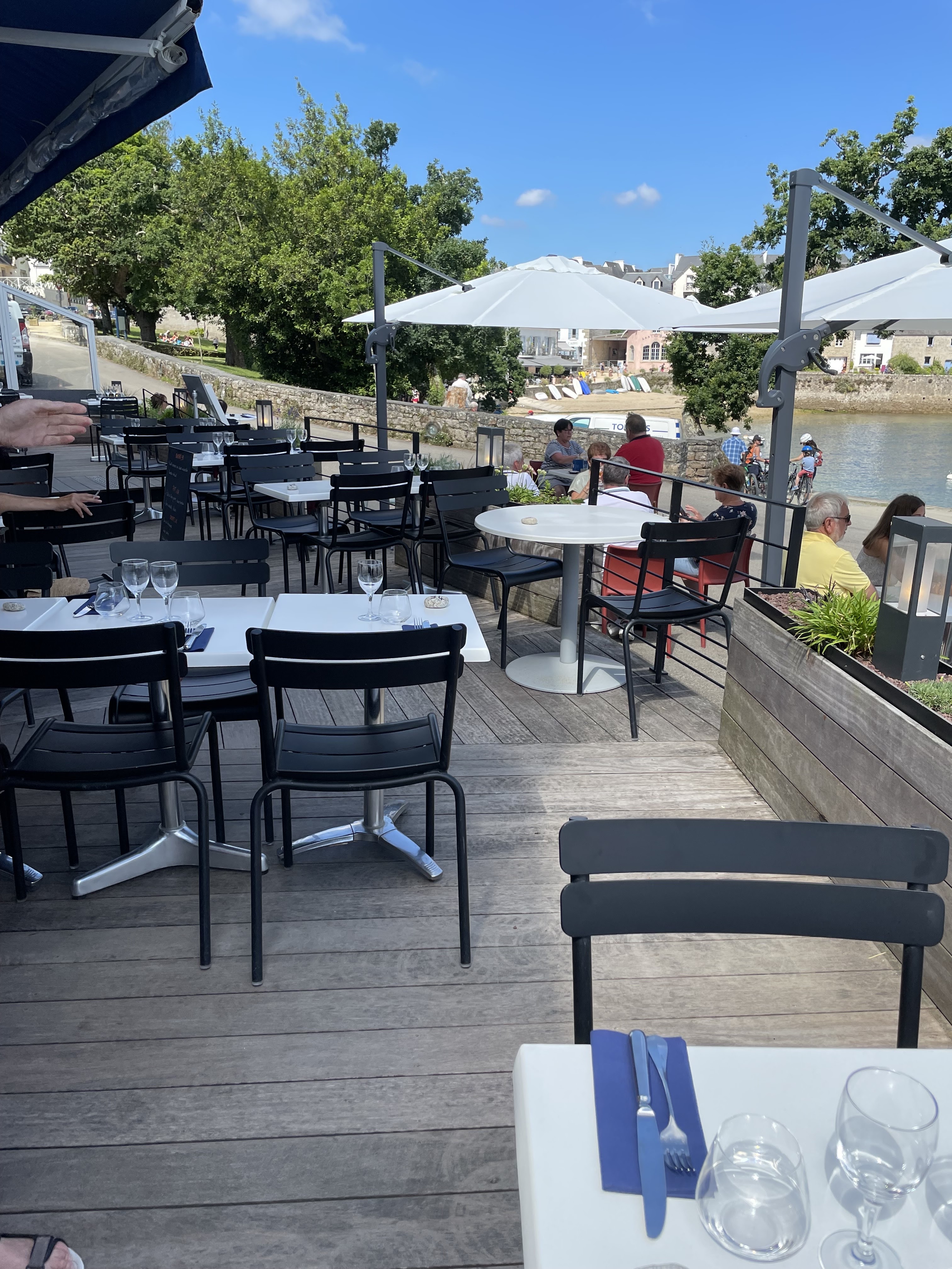 En tant que personne soumise à de nombreuses restrictions alimentaires, j'étais ravie que cet endroit propose non seulement des réservations en ligne, mais également un menu ! Nous avons ri avec les blagues des serveurs, notre nourriture était délicieuse (l'assiette végétarienne est bien plus qu'une simple salade !), et la vue sur Bénodet était imprenable. Recommande fortement!