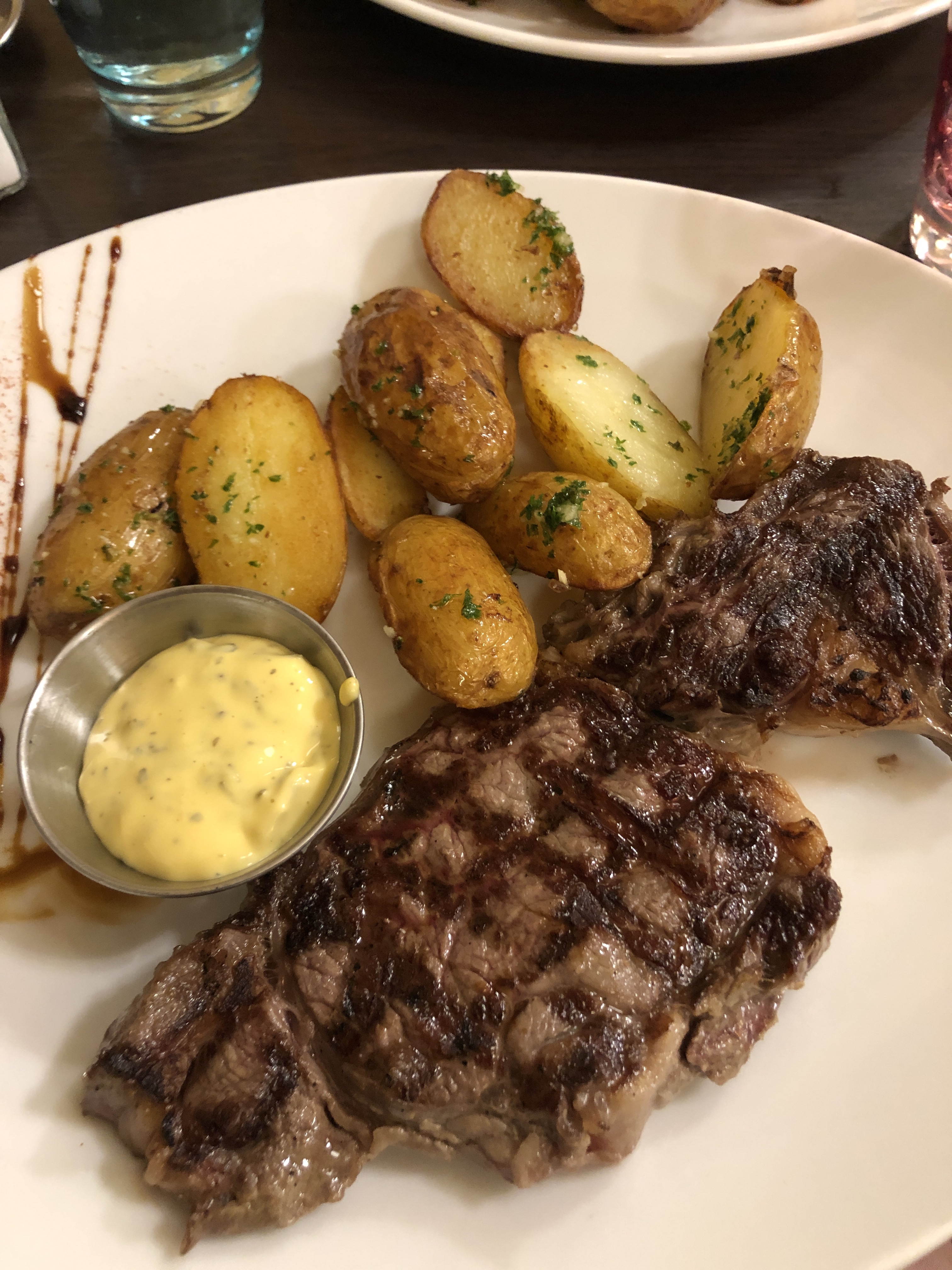 Vin Rosé bouchonné, change pour du Rosé tiede, avec des glacons, et vraiment pas bon. Entrée, os à moelle inmangeable, sec et mauvais goût, carpacio passable, dessert crème brûlée bon. Pavé de rumsteck bon, frittes congelé pas terrible. A pas refaire