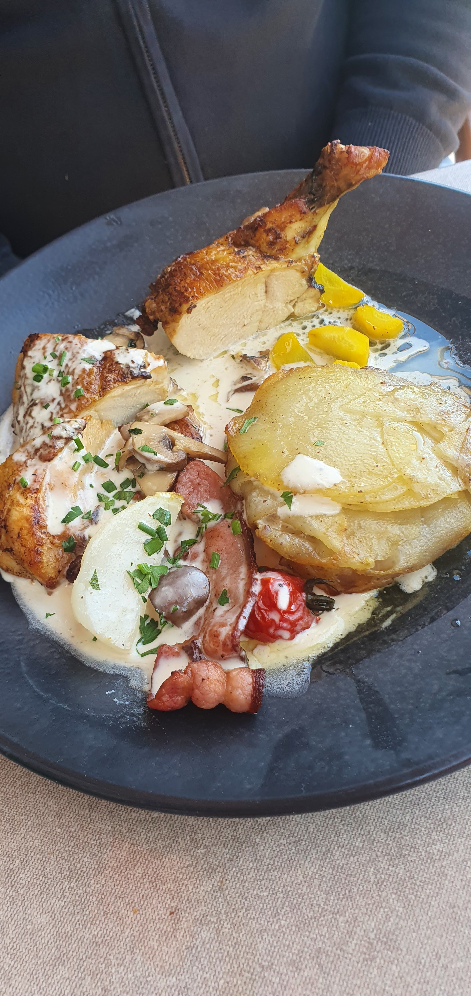 Cadre très agréable, accueil simple. Merci au chef 👨🍳 et aux autres cuisiniers au top ! Repas tout simplement délicieux, carte au juste choix qui garantit une maitrise des plats proposés. Nous y retournerons ! Merci.