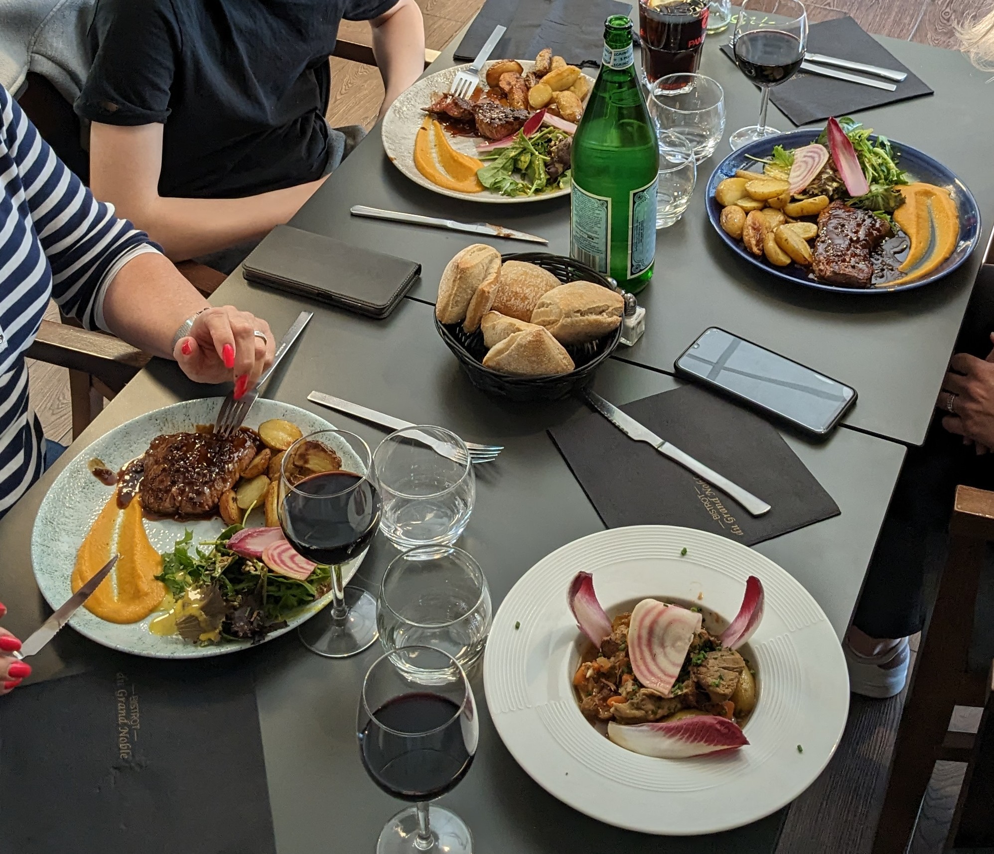 Au bistrot du Grand Noble la salle est agréable, l'accueil chaleureux et decontracté. Les assiettes sont belles et généreuses. On se régale de produits frais. Le service est à l'image de tout le reste : aimable et efficace. Quant a l'addition, elle est plus que raisonnable. Je recommande vivement.