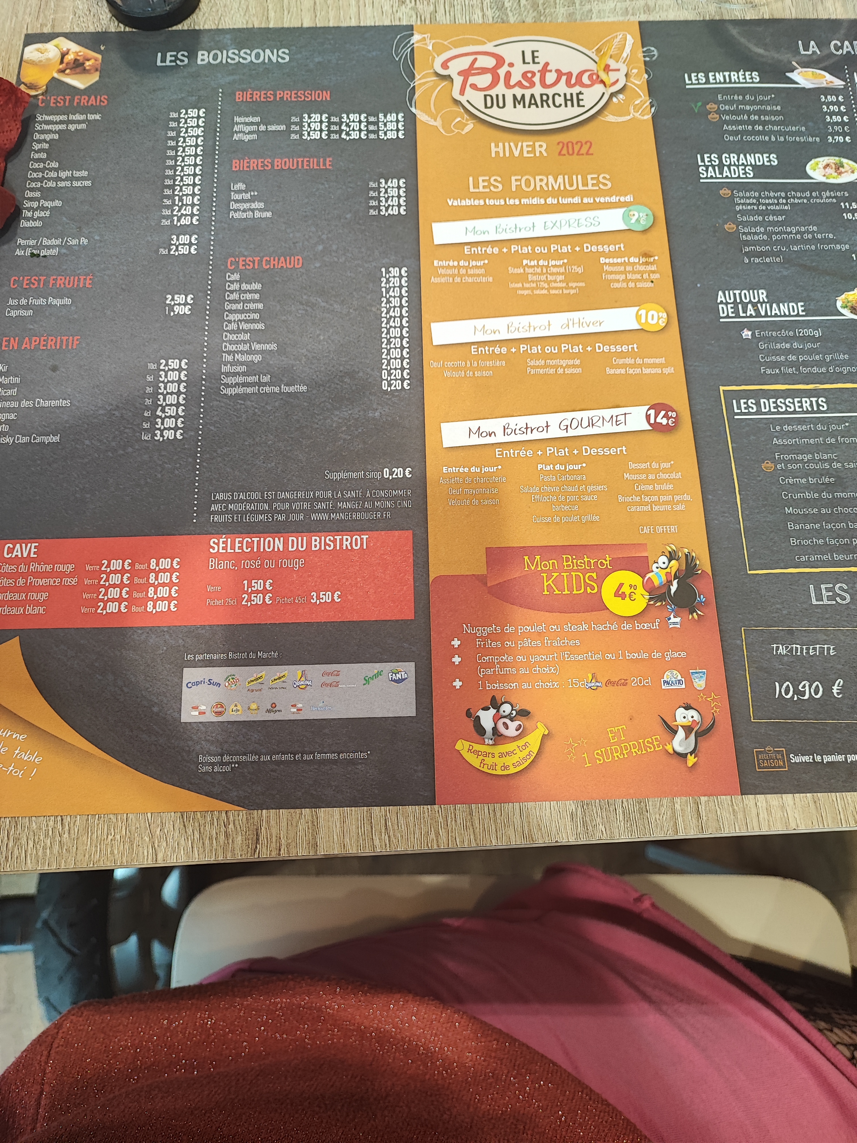 Quelle agréable surprise, hier, ce bistrot ! Nous pensions entrer dans une cafétéria de supermarché ! Mais nous avons été accueillis, formule express pour 2 adultes et un menu enfant, servis rapidement. Avons choisi les plats du jour. Tout était bon et bien frais. Très bon rapport qualité prix. Bravo et merci ! Le petit jouet offert avec le menu enfant a bien plu aussi ! 😉