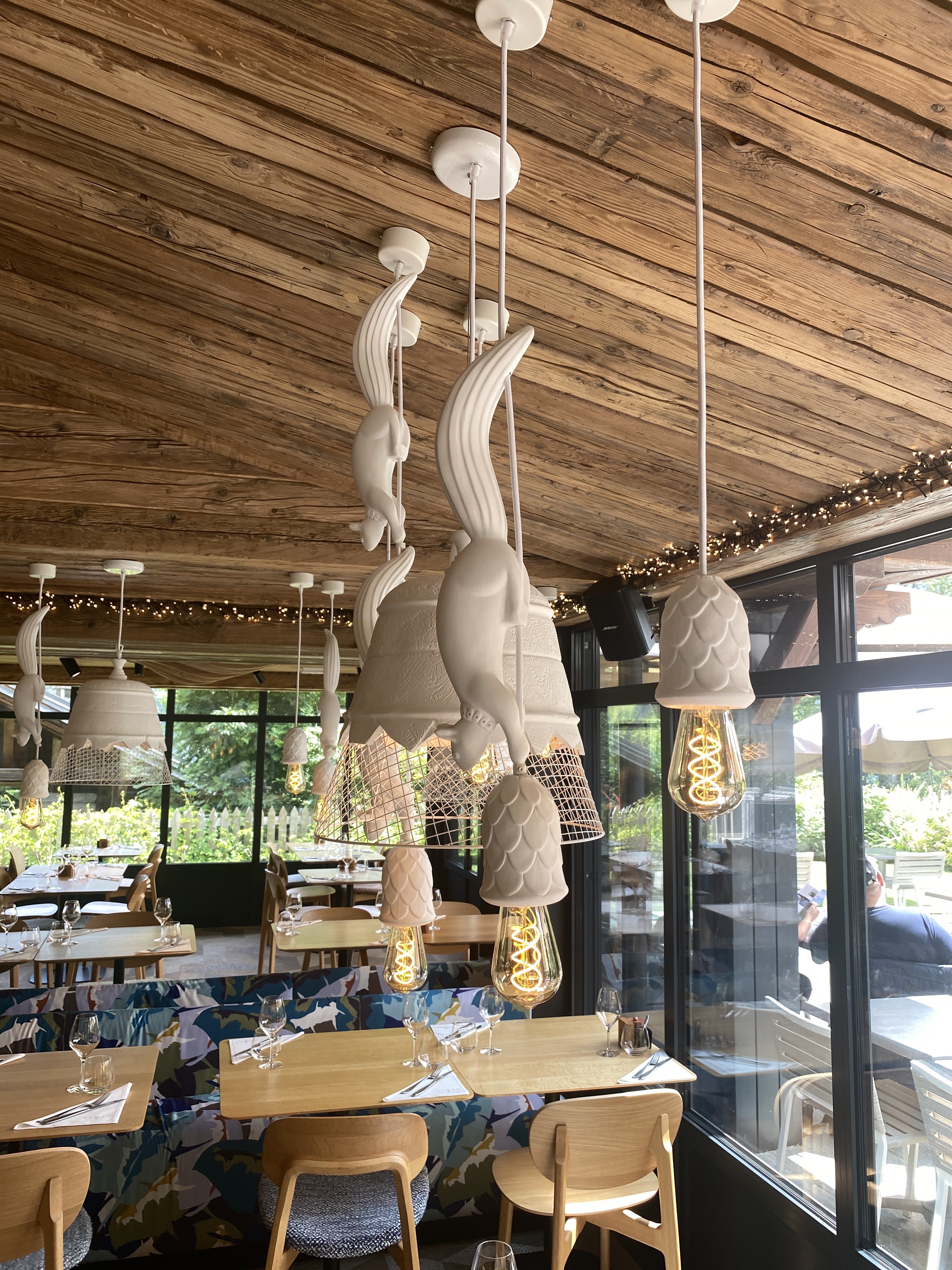 Très bel endroit réalisé avec goût, avec ce design de bois et ces grandes baies vitrées. A l étage ce lounge est très agréable.