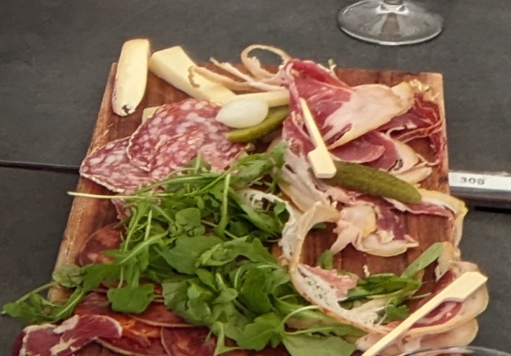 Par chance nous étions 6 et cela l’a découragé, ce restaurant dont la terrasse n’était même pas à moitié dressée. Seule proposition, une planche à partager sur une modeste table à café. Dommage vu l’heure (12h20), tant pis pour le restaurateur