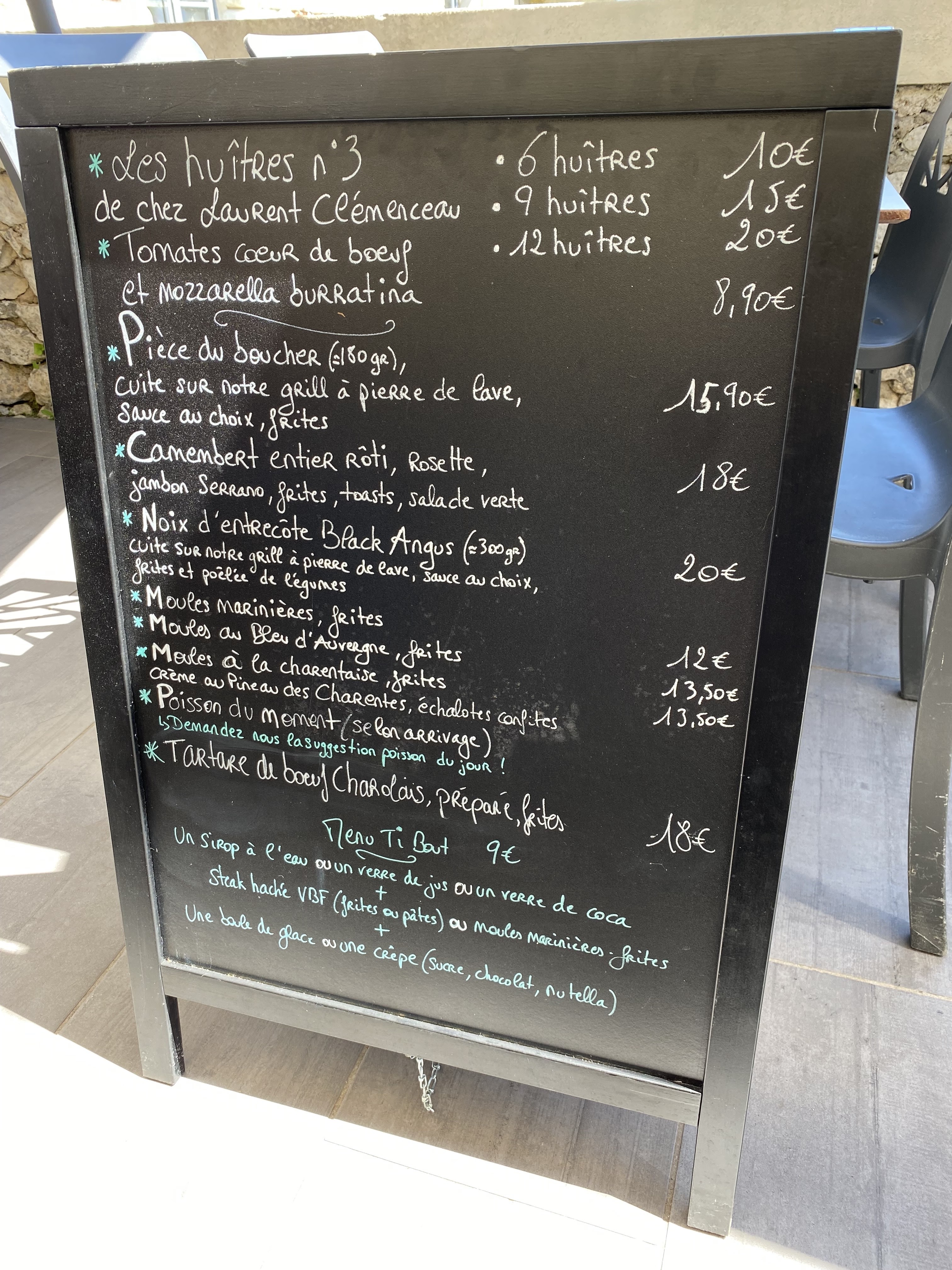 Personnel accueillant, à l'écoute. Cuisine simple mais bonne (excellent moules frites charentaises). Prix très très correct. Endroit magnifique