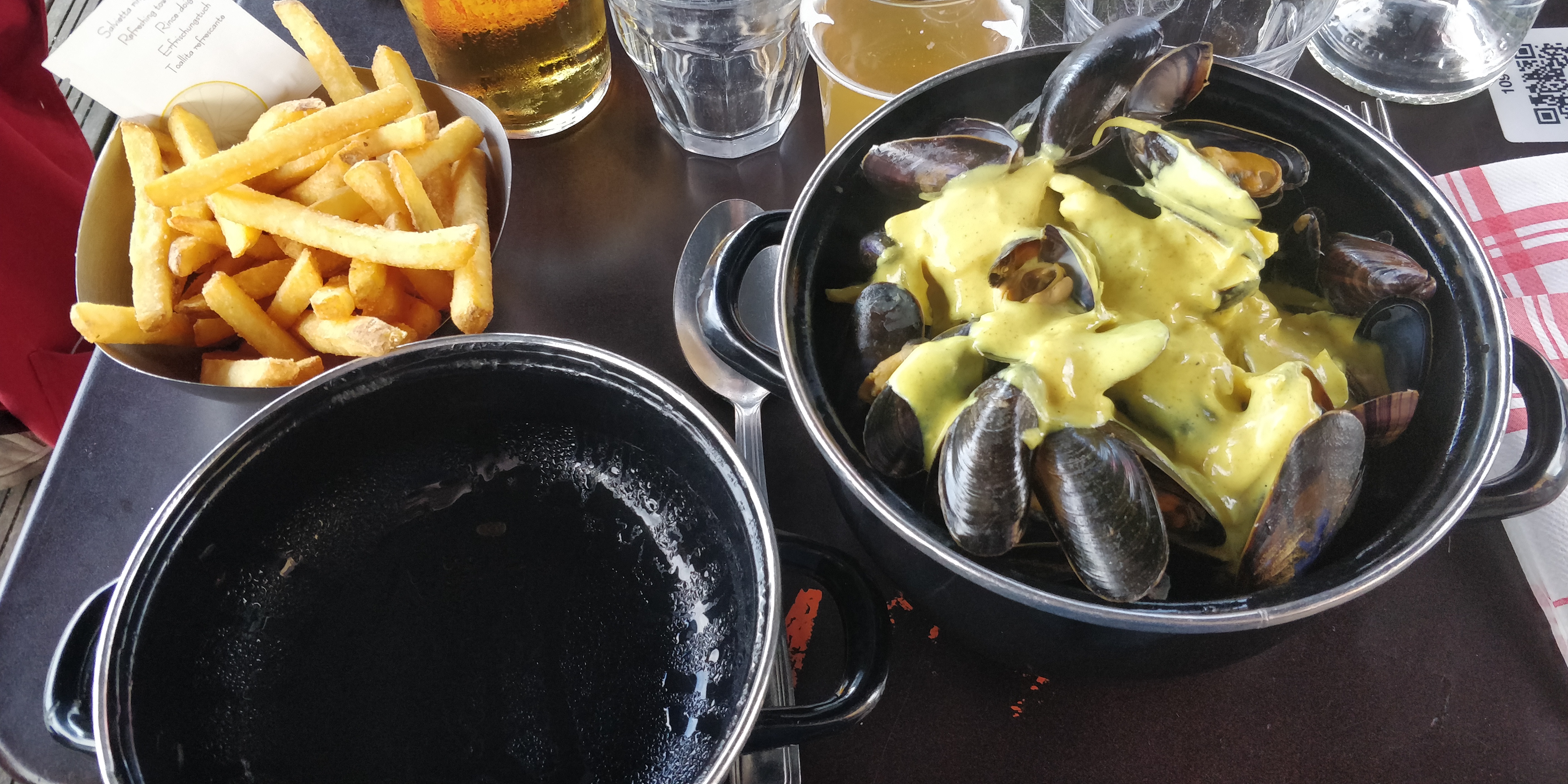 Endroit sympa mais malheureusement service trop long, 1:20 d'attente pour des moules pas cuites encore gluantes et collantes et des frites surgelées. Dommage ! Mise à jour du lendemain du repas : malade comme un chien ... merci les moules pas cuites ou/et pas fraiches.