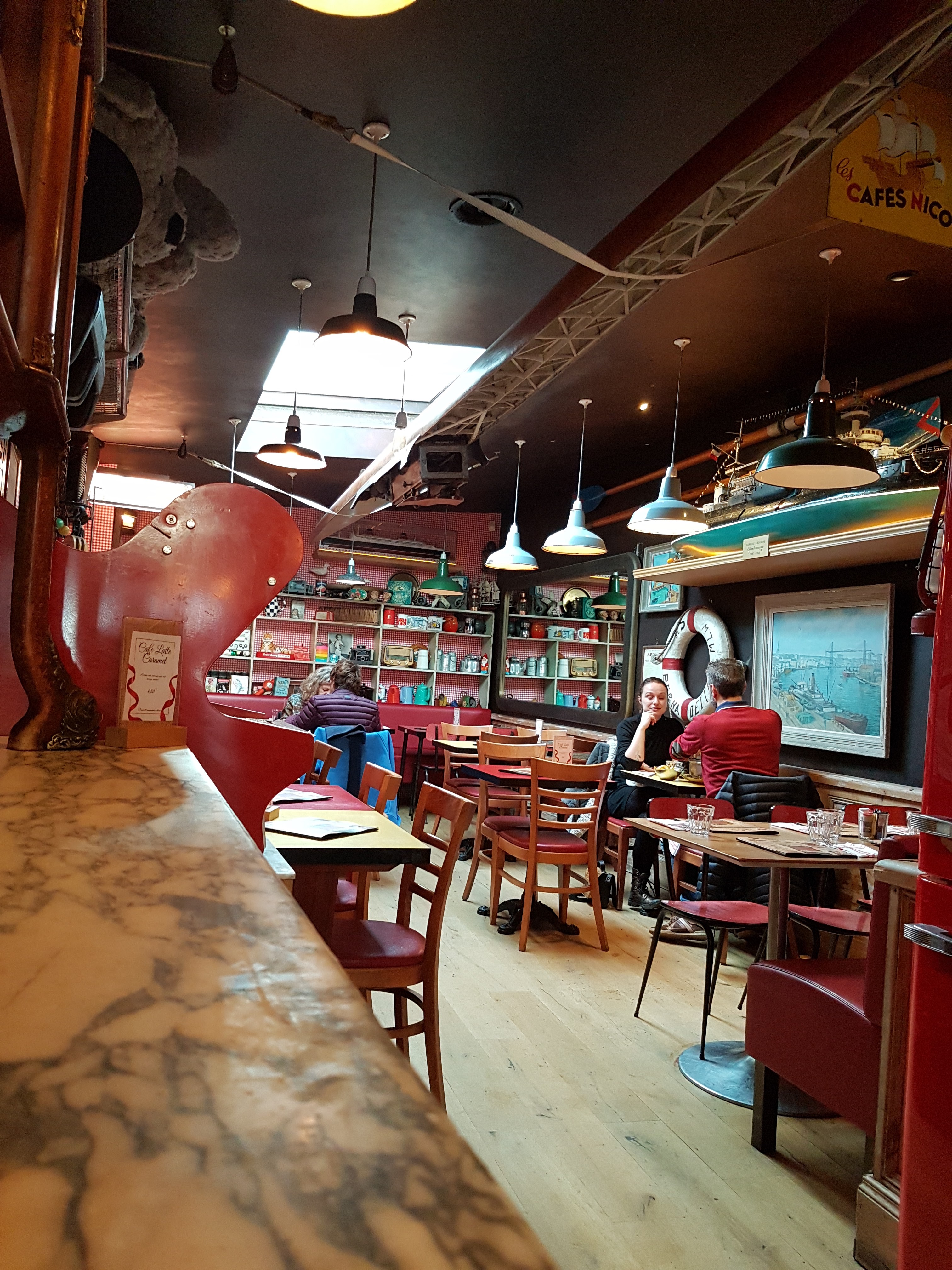 De ballade dans le coin, nous nous sommes arrêté dans ce bistrot prendre un café. Nous avons beaucoup aimé le lieu, décor très attypique, et juste en face du port! Très sympa