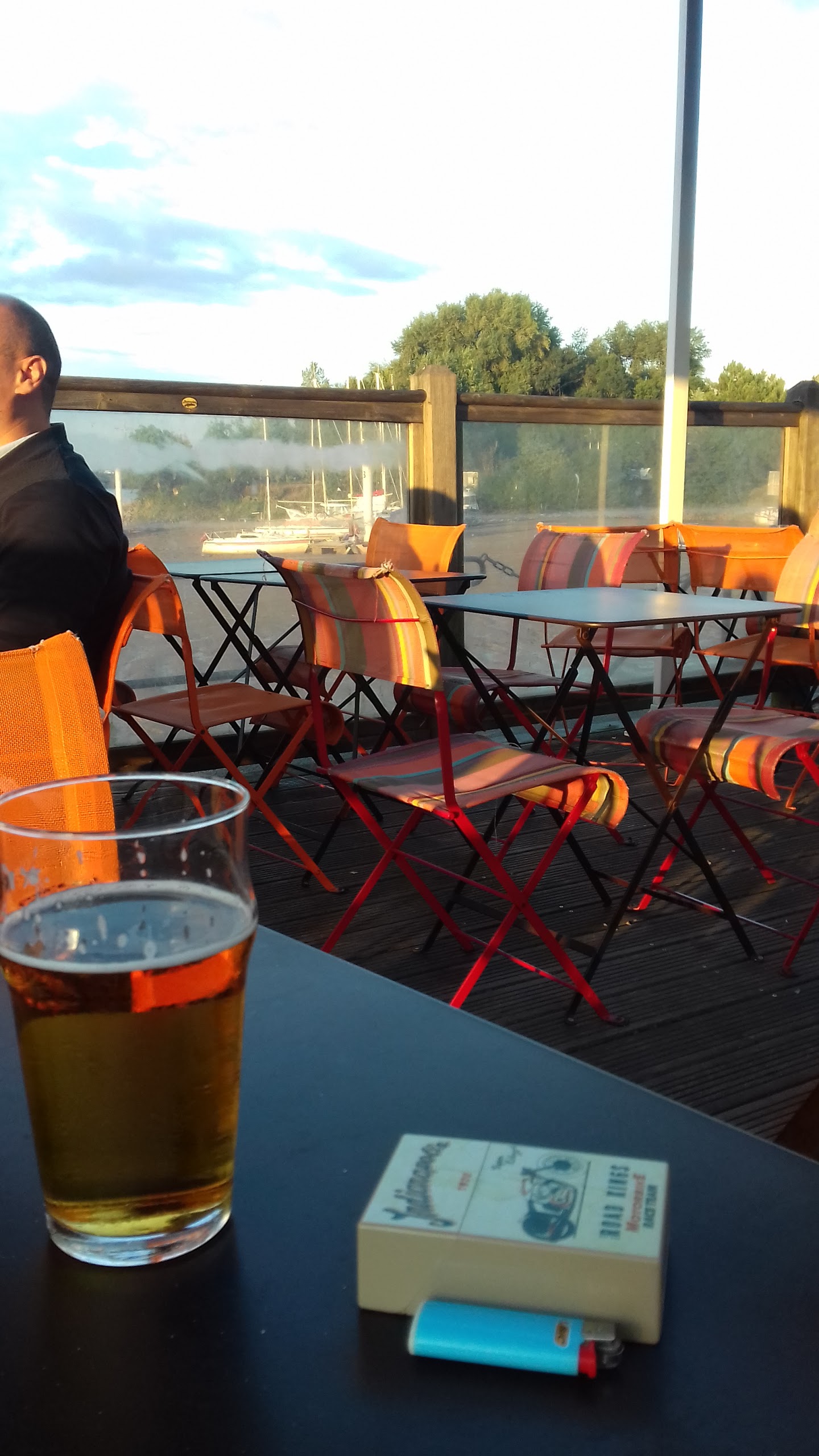 Un petit verre voire plus, sur un tonneau en terrasse face à l'île de Nantes! Cadre fort sympathique...