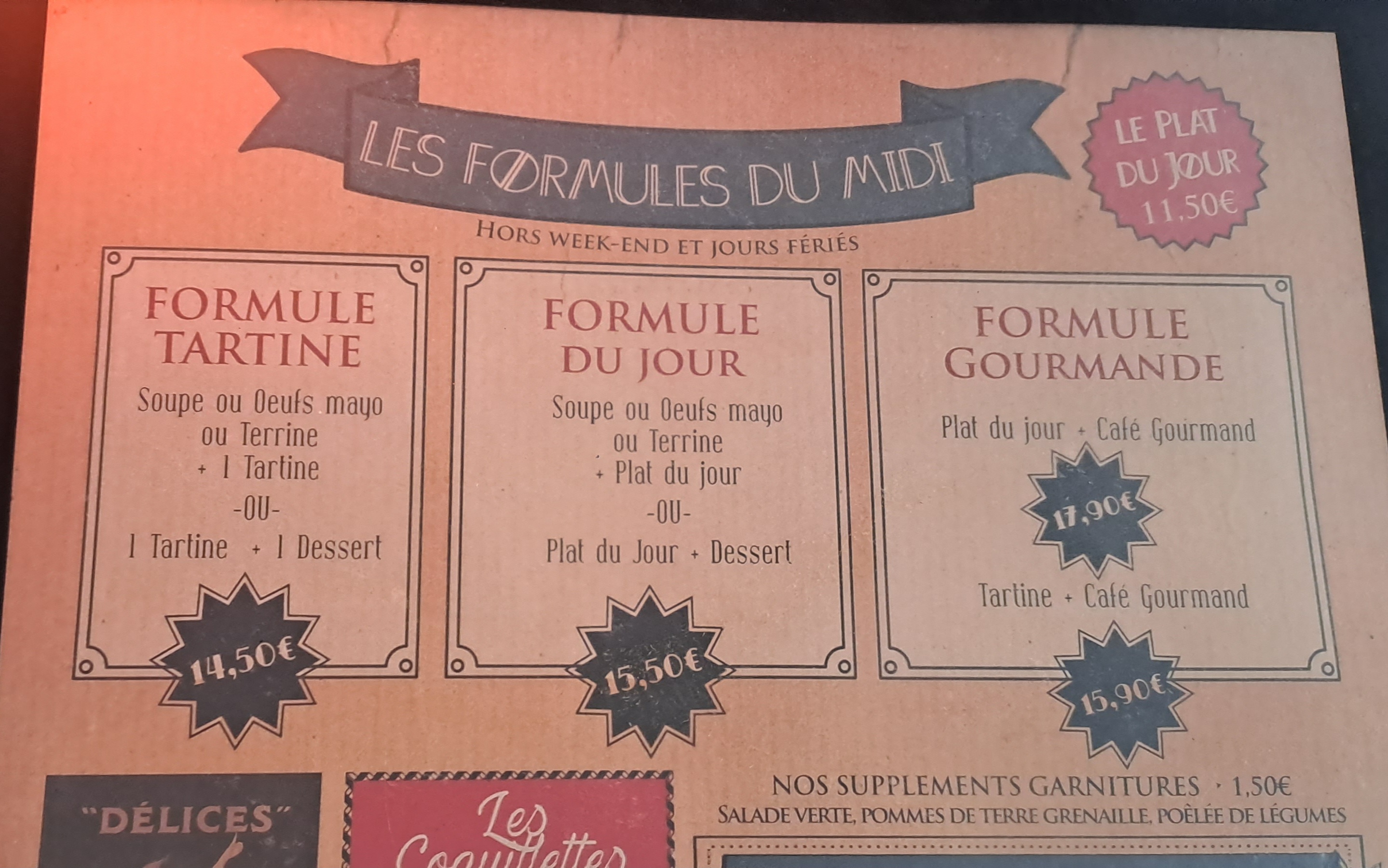 Génial avec mon marie on adore venir manger une carte super un plat du jour toujours au top les soupes changent souvent et son savoureuse et de plus le personnel est super agréable et au petit soin et le tout dans un cadre atypique et chaleureux je recommande