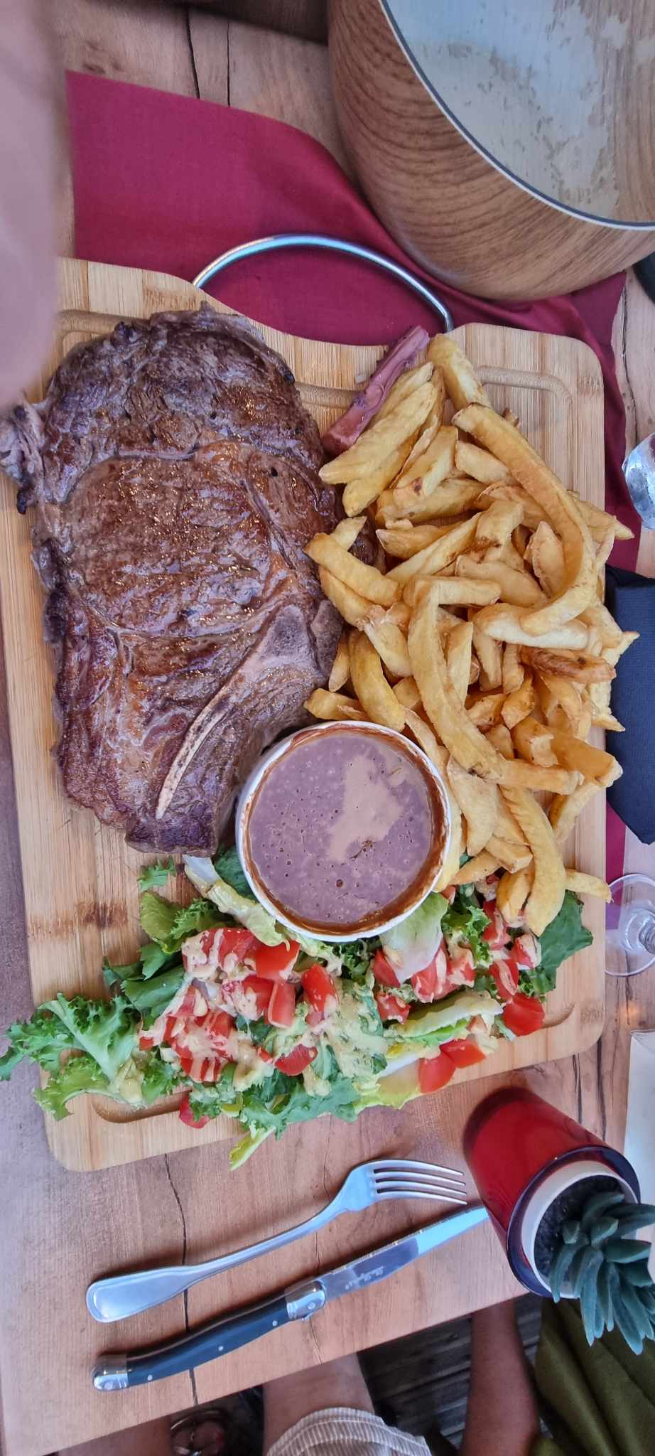 Plats très copieux ,avec des frites excellentes Une 1 ère fois ,on a pris des tartares et la 2 ème fois moules au roquefort et hamburger Monster ( avec 360g de viande) ,gros plats pour bons mangeurs Service agréable un peu long à améliorer mais comme les plats sont faits avec soins et la cuisson des steak parfaite donc ça mérite 5 étoiles A refaire