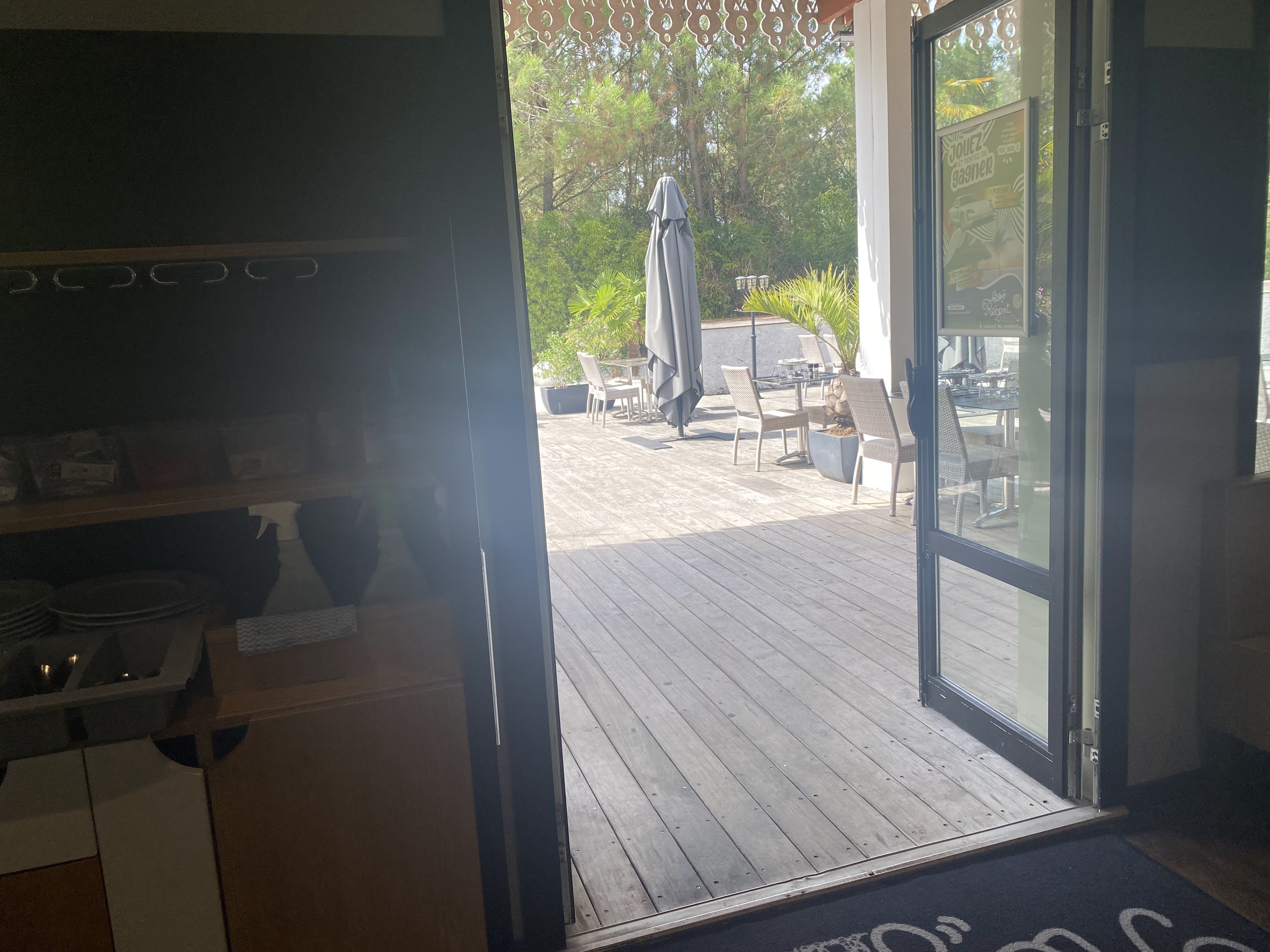Manger avec 6000 whats au-dessus de la tête, ce n'est pas évident ! En fait il faut manger avec des lunettes de soleil, la salle fait cantine ou self , c'est vous qui voyez 😩 Il ne vaut pas celui de La Teste 👍