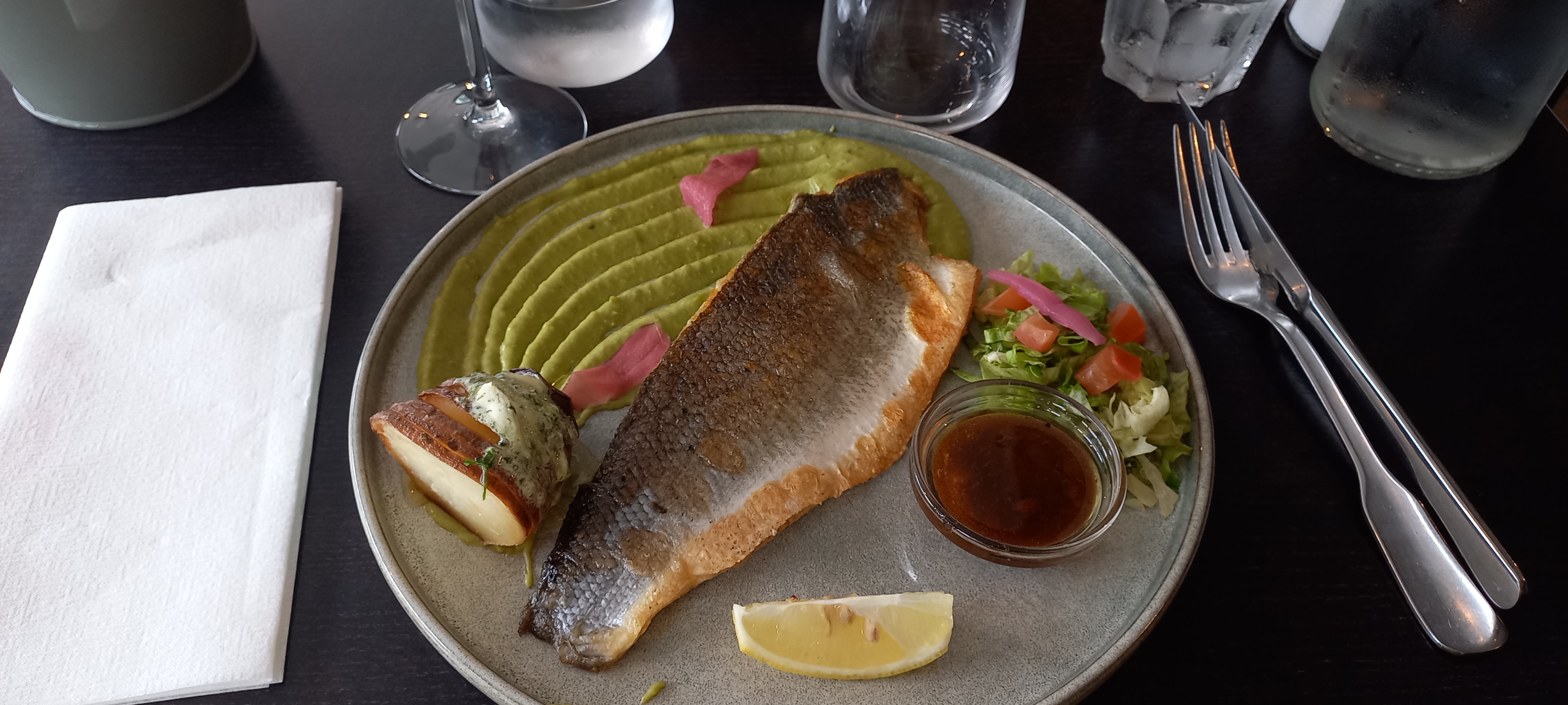 Repas excellent poisson cuit à point Une escale dans un cadre agréable