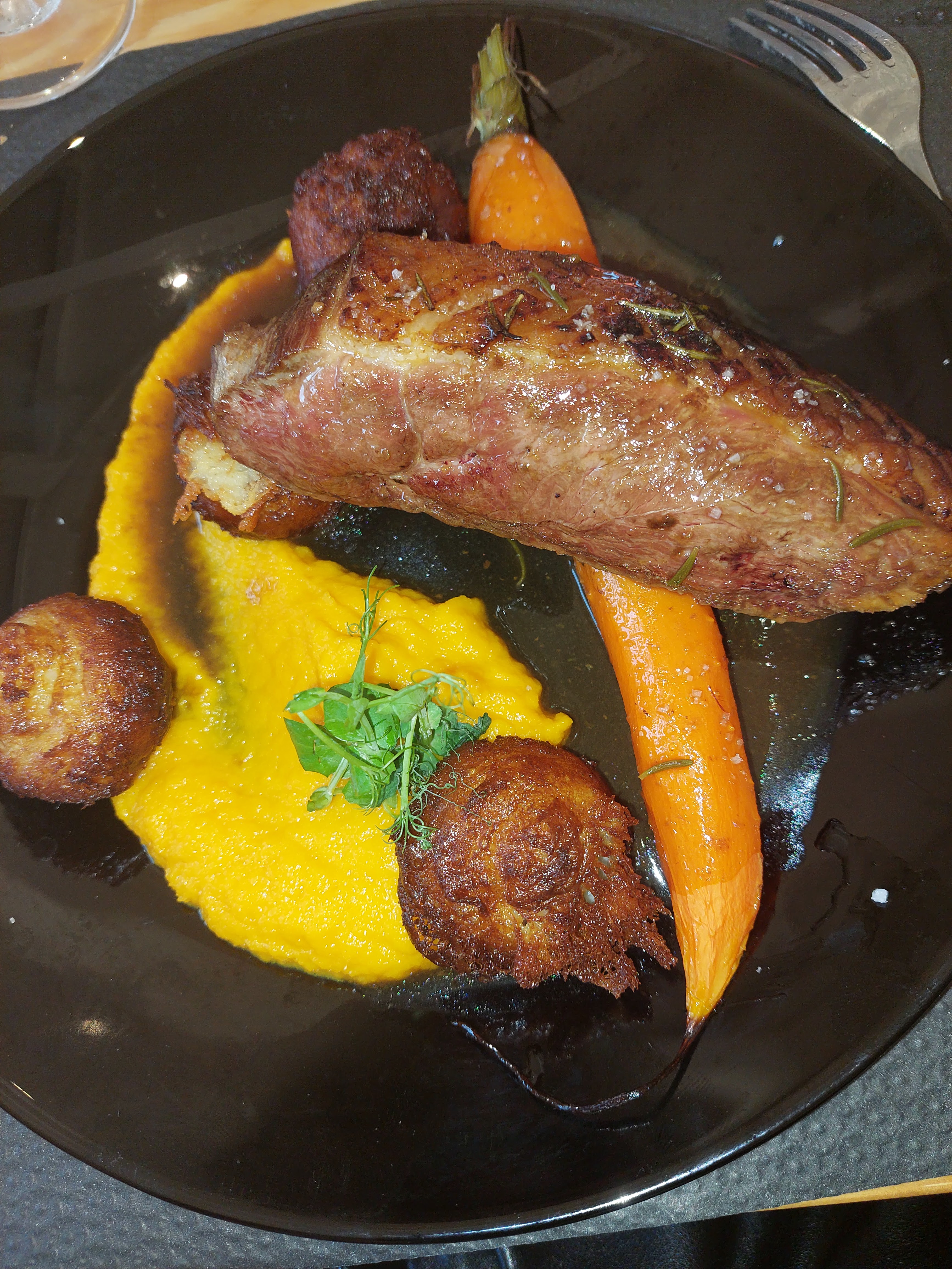 Bien le gigot d'agneau était très bon mais les légumes craquant et pas cuit je déteste ça, le service très bien mais il faut faire attention débarrasse la table sans avoir fini de manger