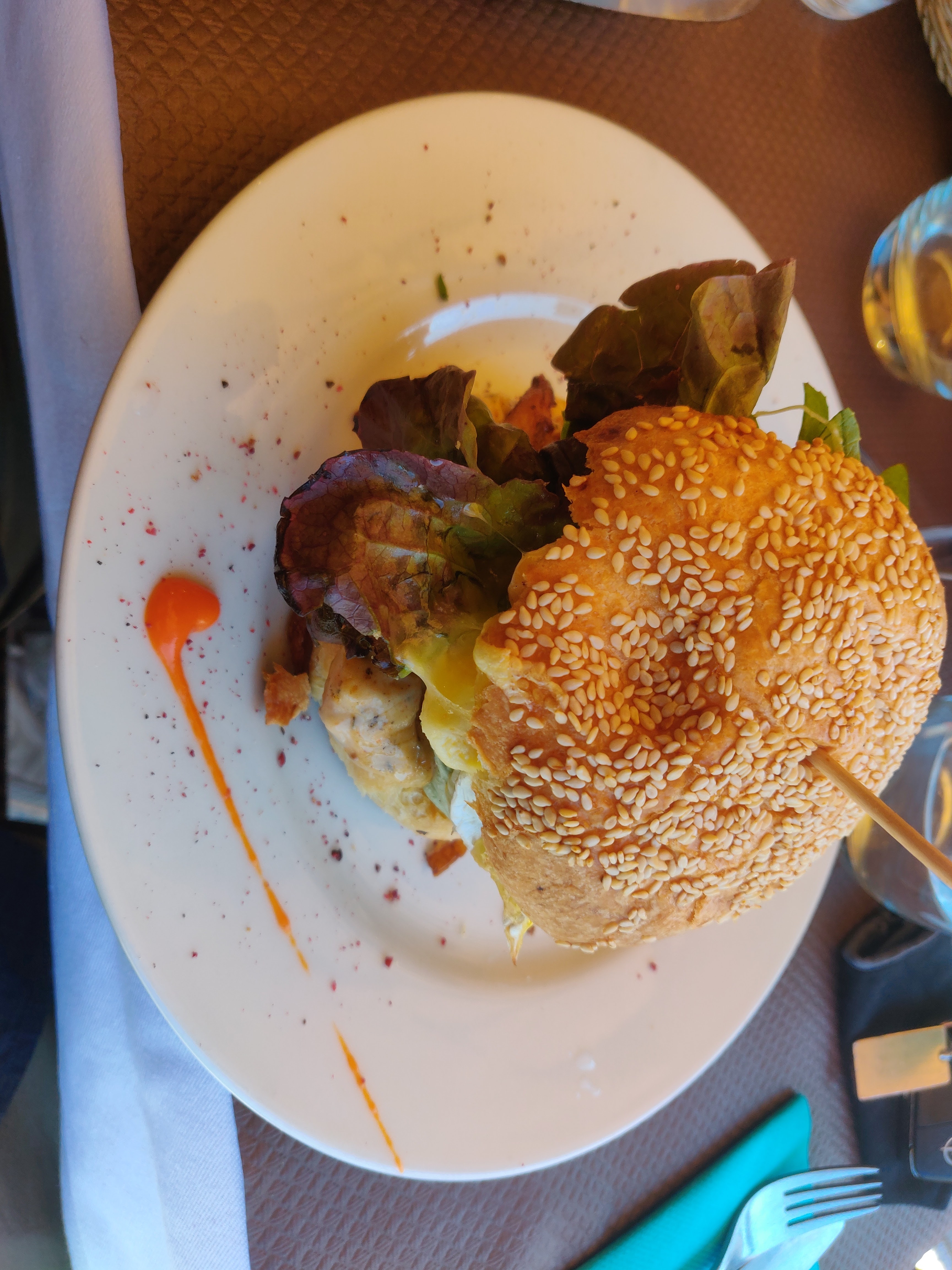 Avant de m'installer sous la terrasse couverte je demande si je peux le faire avec mon chien. On.me dit oui mais au final je pense que les animaux ne sont pas les bienvenus. On me dit sur un ton mal aimable que mon chien devra être au sol et pas sur la chaise alors qu'il y était juste le temps de montrer mon pass sanitaire. Je suis partie sans attendre