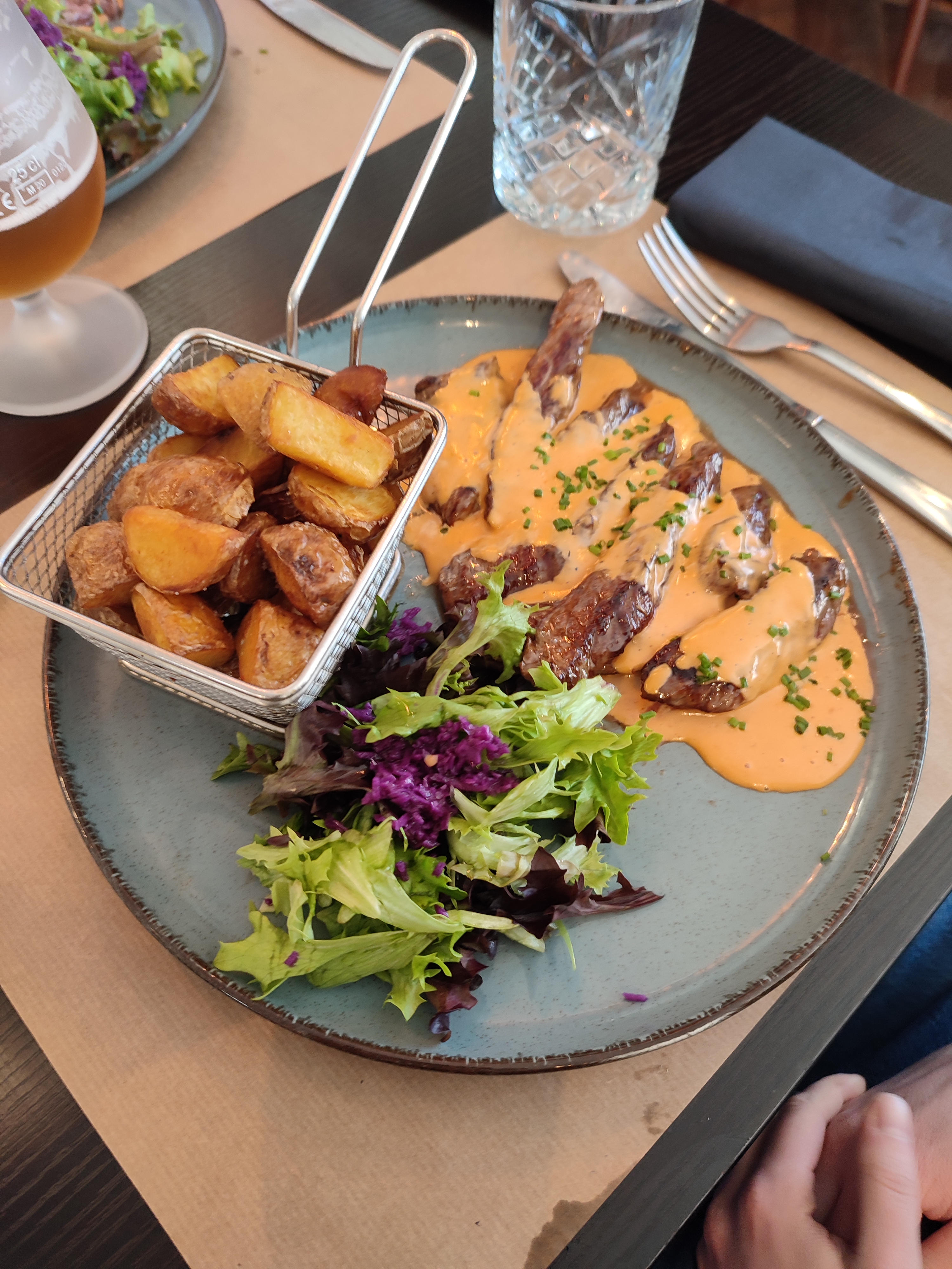 Cadre très sympa, on s'est régalé, le boeuf bourguignon revisité était délicieux et la sauce du magret de canard ... 🤩 Personnel très gentil. C'est un resto qui a ouvert il y a quelques mois et qui gagne à être découvert!