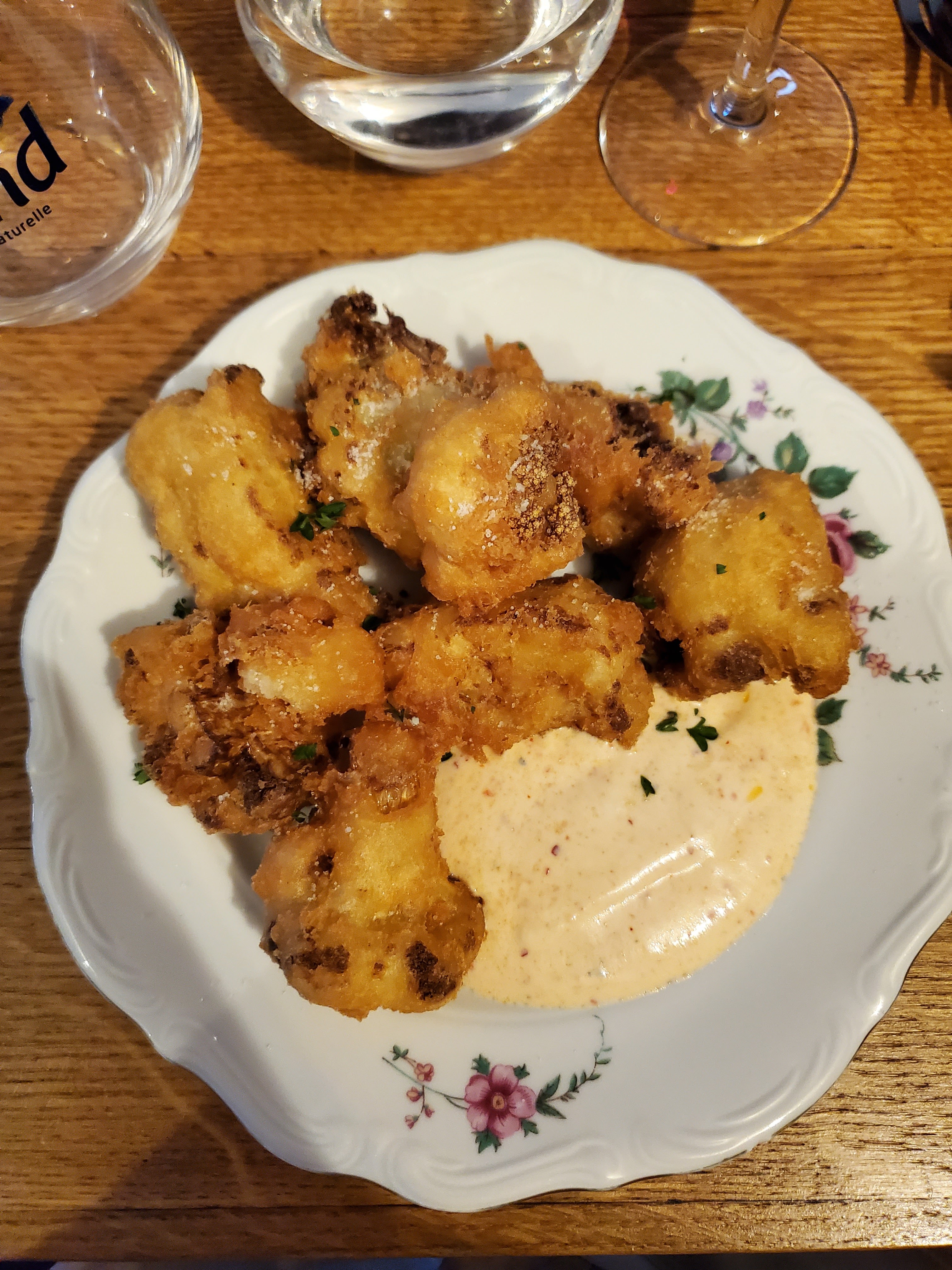 Nous avons eu les poireaux en vinaigrette et tempura de chou-fleur pour commencer, puis les croquettes de riz et le veau en plat principal, la Charlotte aux pommes en dessert. C'était fabuleux. Si vous voulez de la vraie cuisine française, des recettes de cuisine maison traditionnelles mais avec quand même un peu de finesse, c'est l'endroit qu'il vous faut. Merveilleux serveur également. Nous hésitations car le menu était petit mais ne le soyez pas, c'était fantastique !