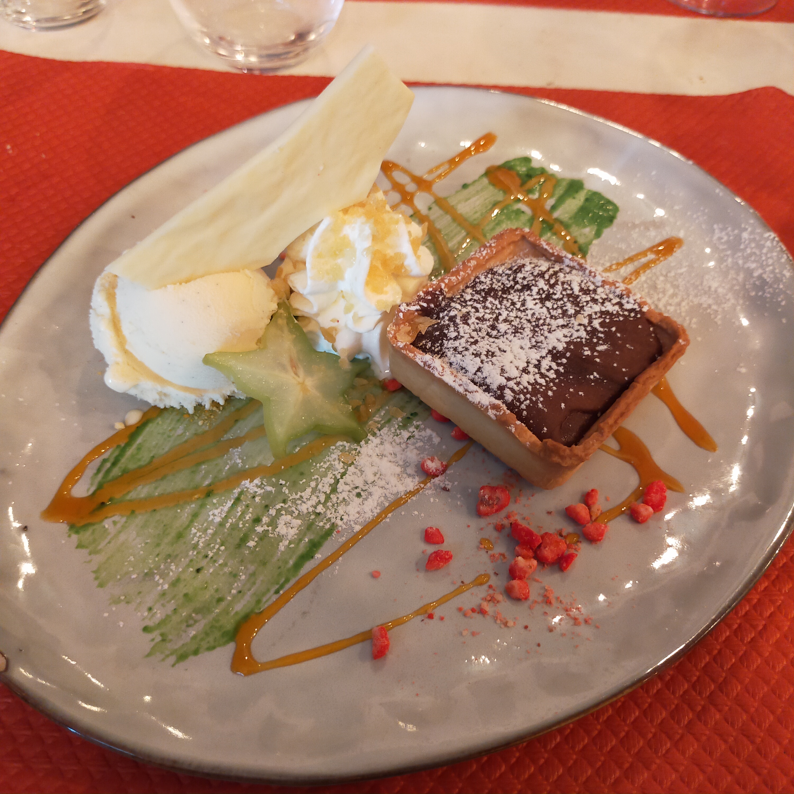 Jolis plats. Cuisine originale et goûteuse. Desserts gourmands. On a passé un bon moment.