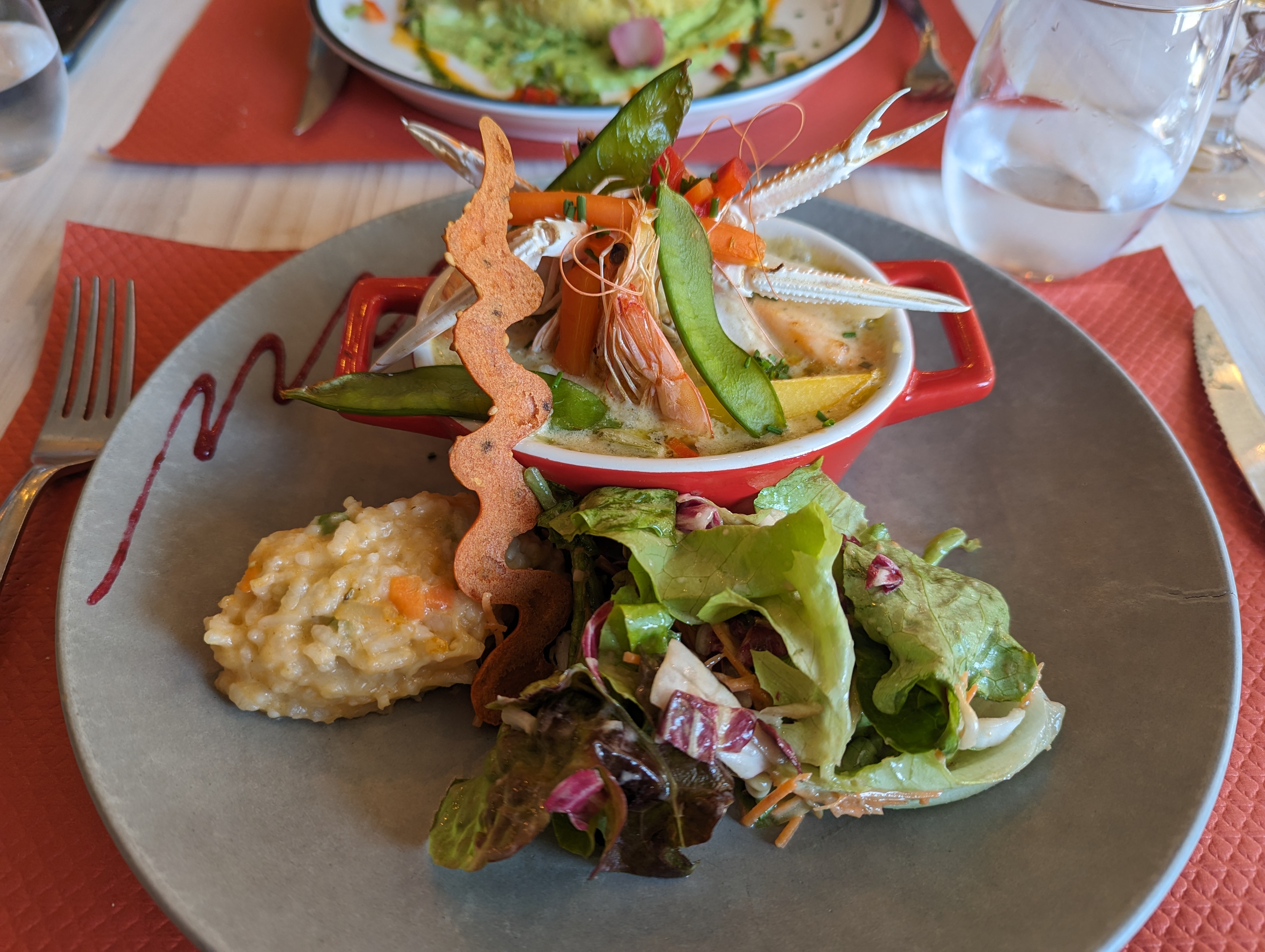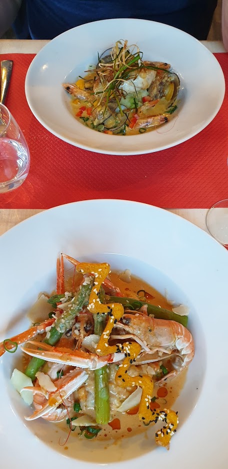 Nous avons été séduits par la carte. Plat dessert très bon , de la bonne cuisine , de bons produits , du goût . Concernant l’entrée , quel dommage ! Crustacés pas frais , mon compagnon a été malade dans la nuit . Nous pensions l’avoir remarqué , mais n’ayant pas l’habitude des fruits de mer , nous n’avons rien dit ,et fait confiance au cuisine. Donc pour résumer bon restau (hors fruit de mer) , mais ne pas faire confiance au personnel , vérifier la fraîcheur des produits . Ça ne devait pas être intentionnel de leur part mais un peu de professionnalisme aurait été la bienvenu , surtout en vacances !