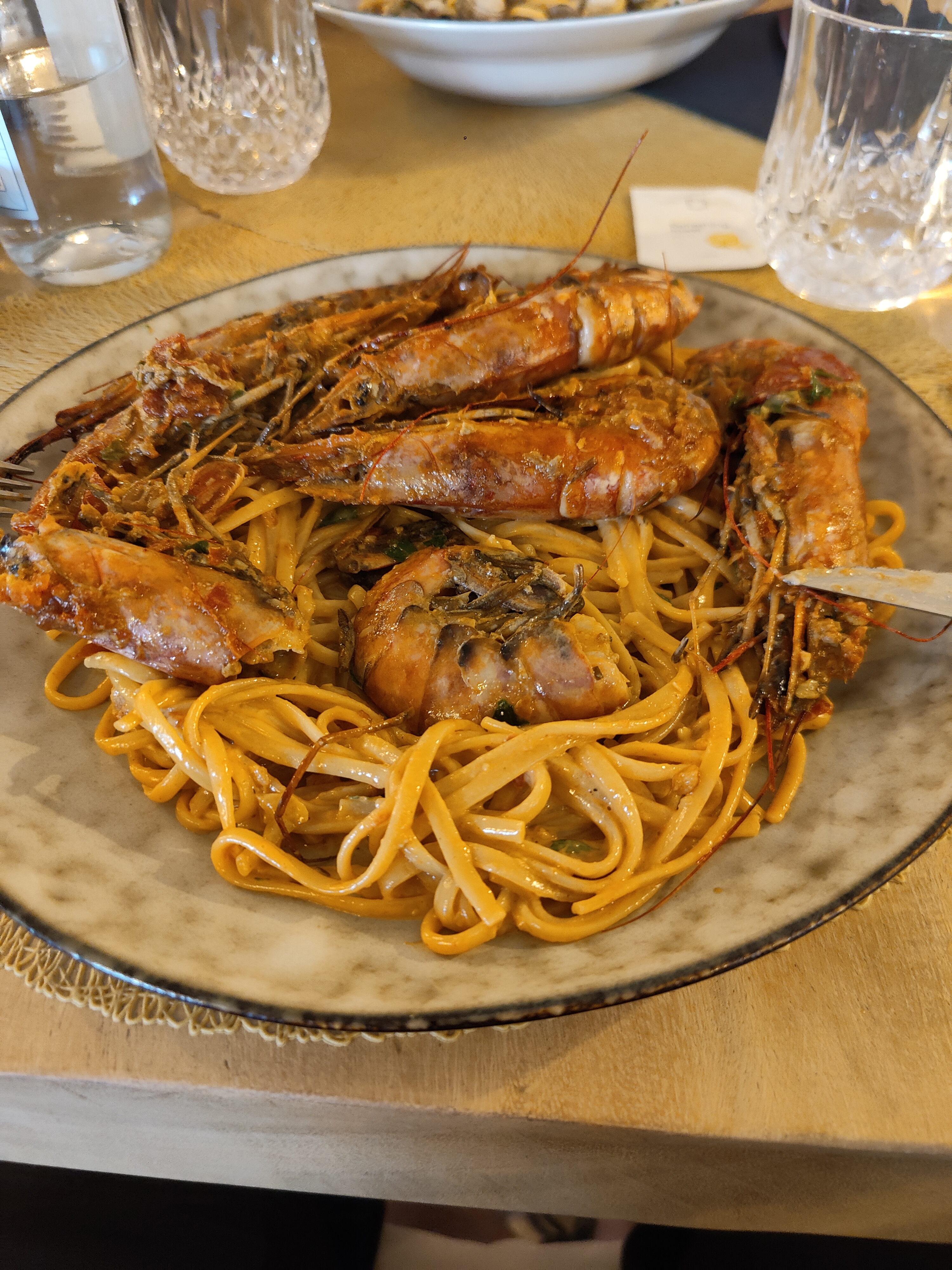 linguine aux gambas à volonté excellentes notamment la sauce par contre linguine aux coques (palourdes sur le menu à éviter) dommage. Personnel très sympathique.