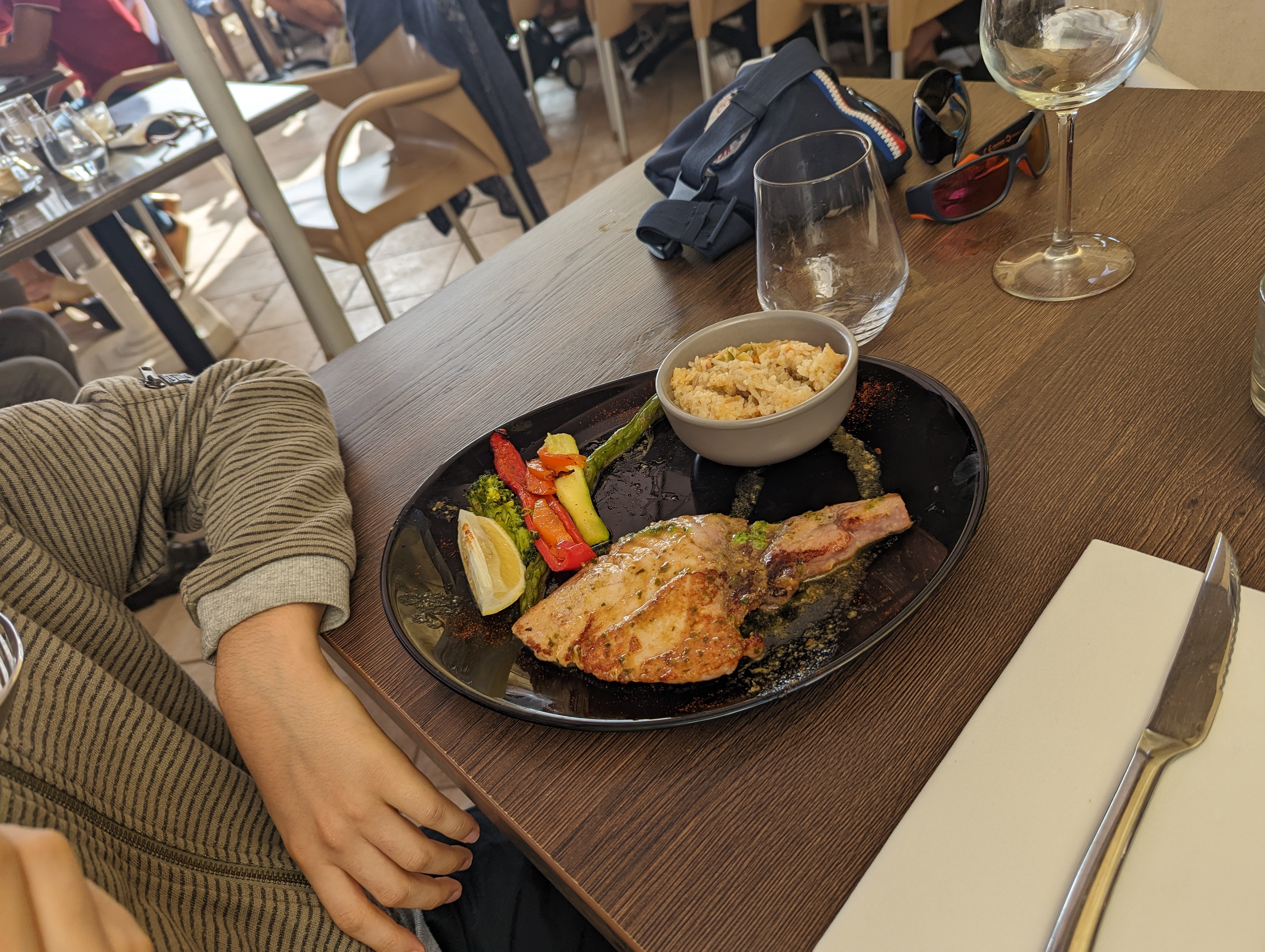 Très bon restaurant ! Agréable et bien placé ! Les plats sont conséquents et avec un très bon rapport qualité prix. Le wok était un peu salé mais c'est le jeu avec les sauces thaï, les linguines de palourdes étaient très bonnes, la parillade de poisson est légèrement trop cuite mais le poisson est frais et bon ! Enfin le menu enfant avec le poisson du jour est juste parfait ! Tout le monde a adoré ! Nous reviendrons !