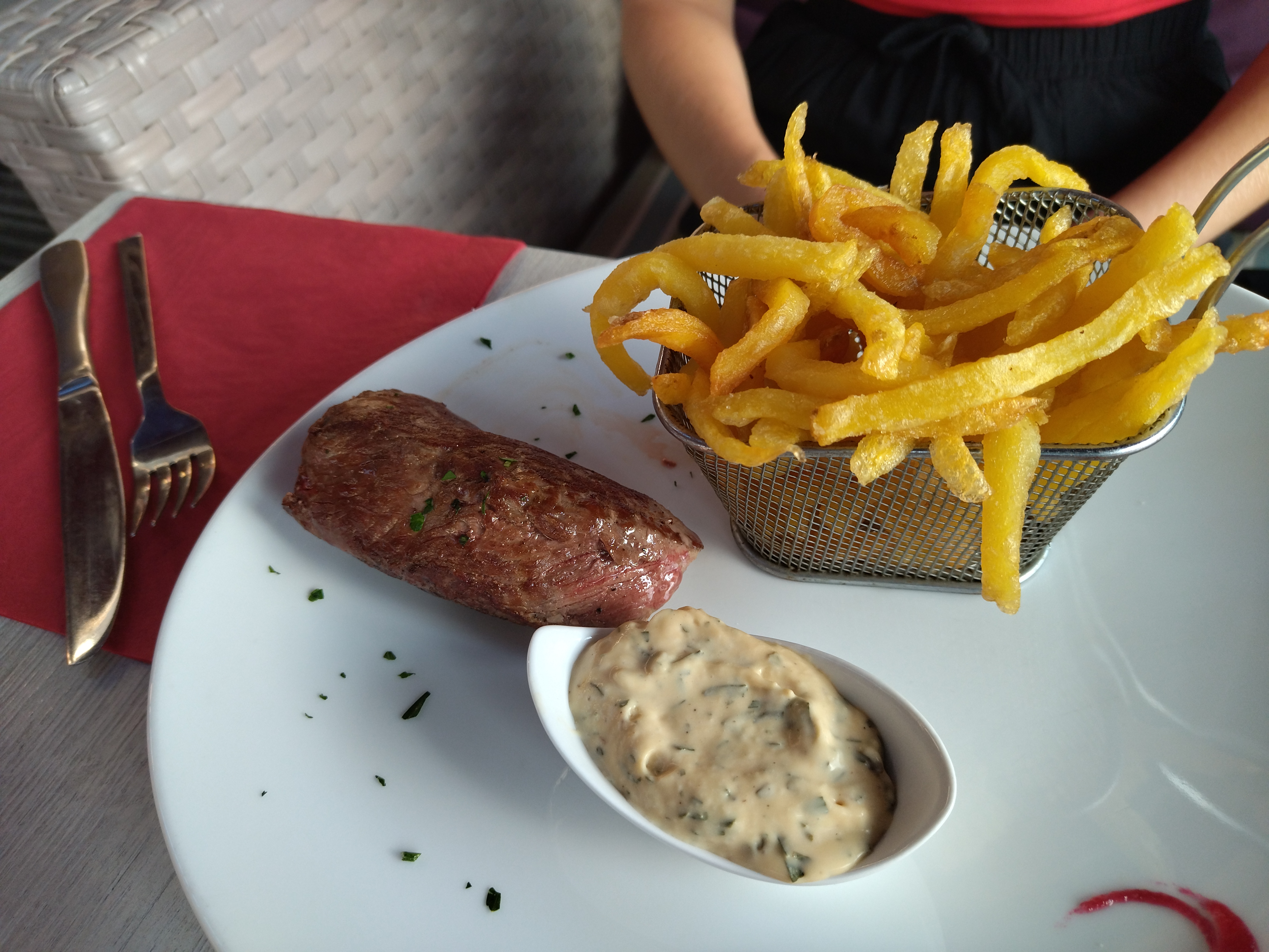 Accueil très agréable, le personnel est souriant et avenant. La cuisine est d’une qualité exceptionnelle, tout était bon. Les frites maison et la viande rouge qui fond dans la bouche, bref un repas mémorable et agréable. Je recommande vivement.