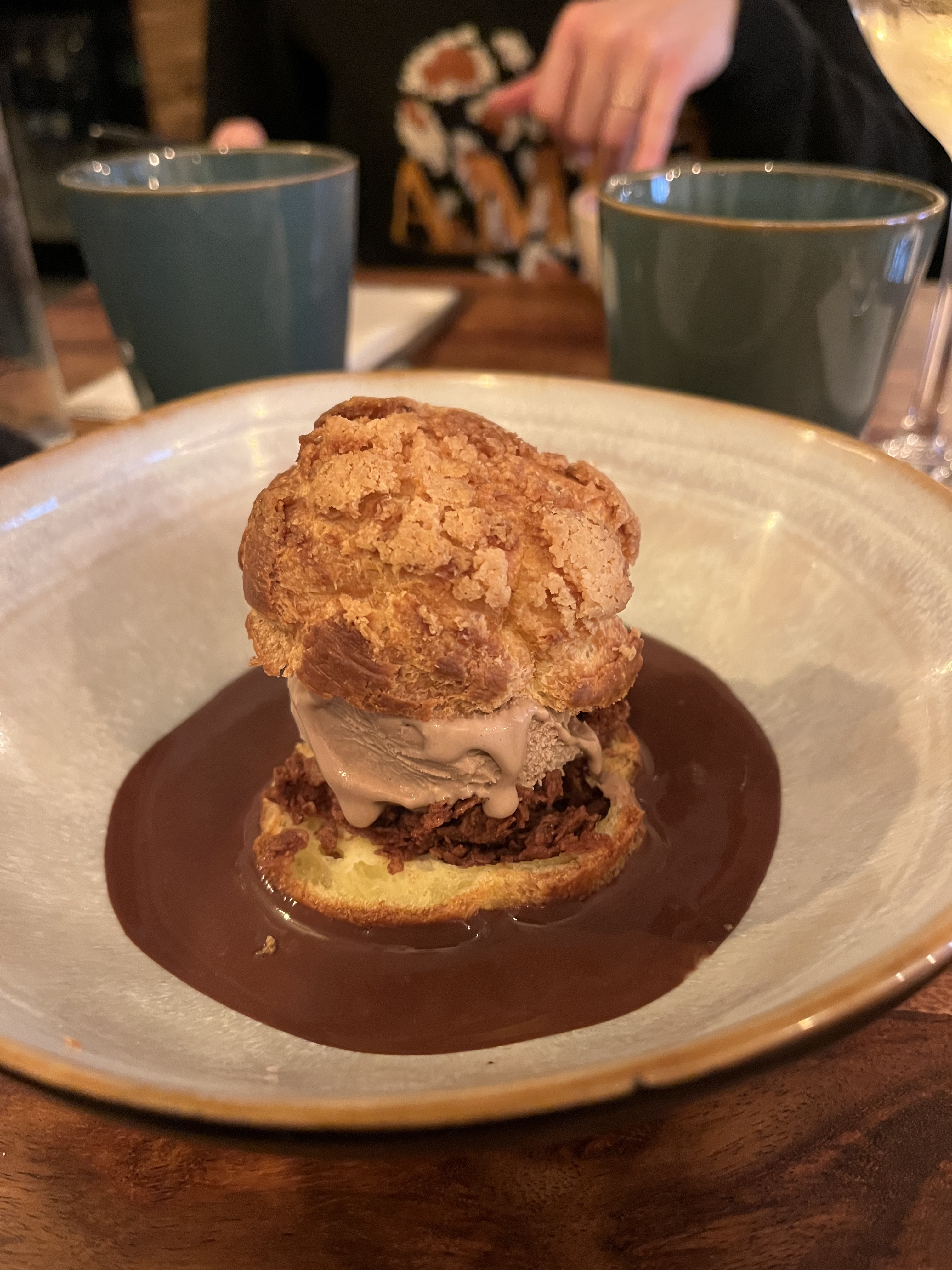 J’ai choisi ce restaurant au vu des avis élogieux, mais j’ai été assez déçue du manque d’originalité et de petites attentions (amuse bouche?) pour le prix. Il manque à mon sens un effort sur la décoration du lieu qui manque un peu de charme. A 150€ à 2, on s’attendait à des saveurs qui sortaient davantage des sentiers battus. En revanche, les profiteroles avec l’insert praliné étaient excellentes et le service est aux petits soins. On peut aussi assister à la préparation des plats car la cuisine est ouverte, ce qui est très sympas.