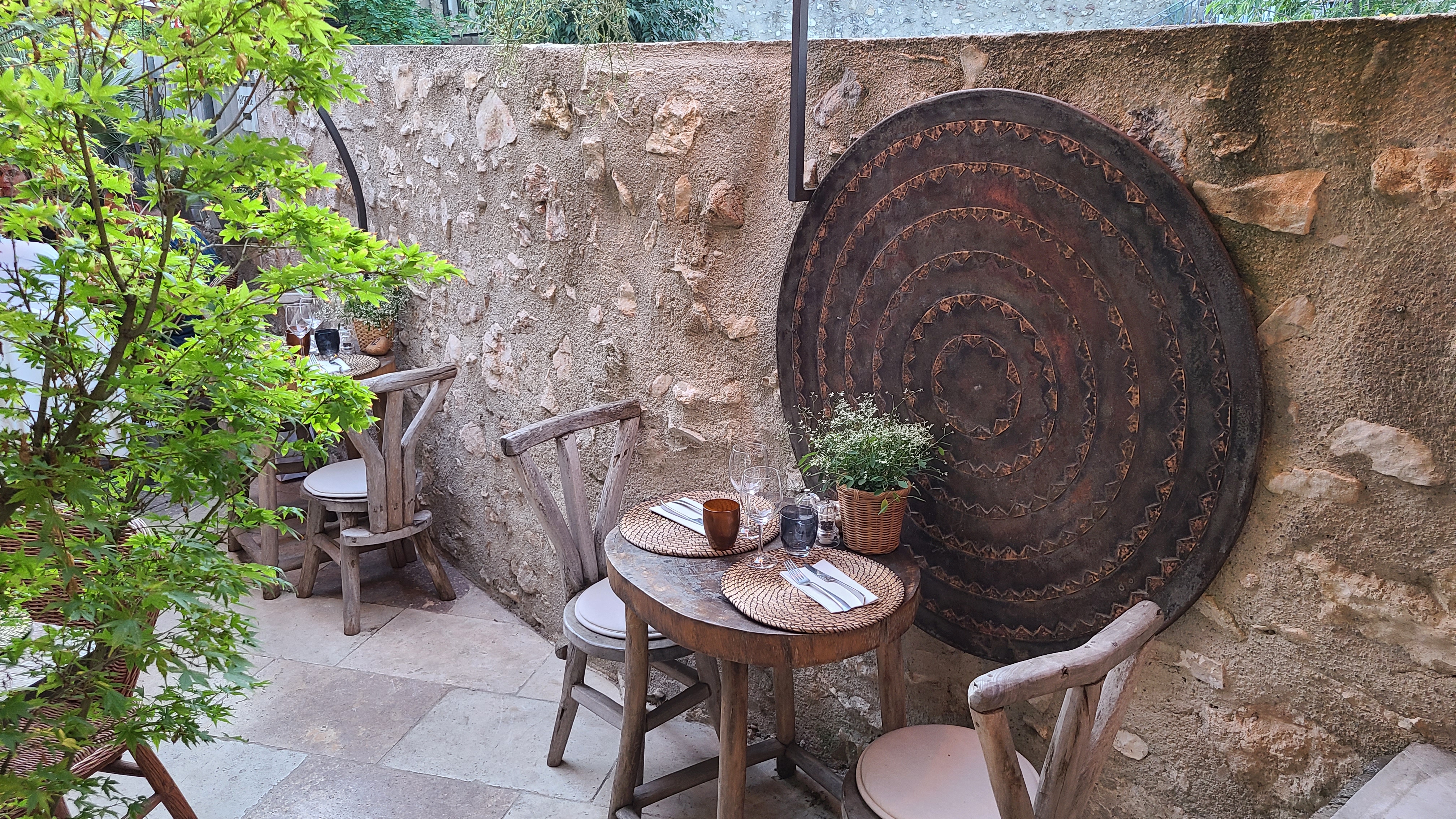 Joli petit restaurant vue de l'extérieur ....surprise en passant la porte les tables sont installées au coeur d'une grande cœur ombragée ....beaucoup de bois....plein de petit coin....très très agréable. Serveurs souriants et prevenant. Belle carte et belle assiette.