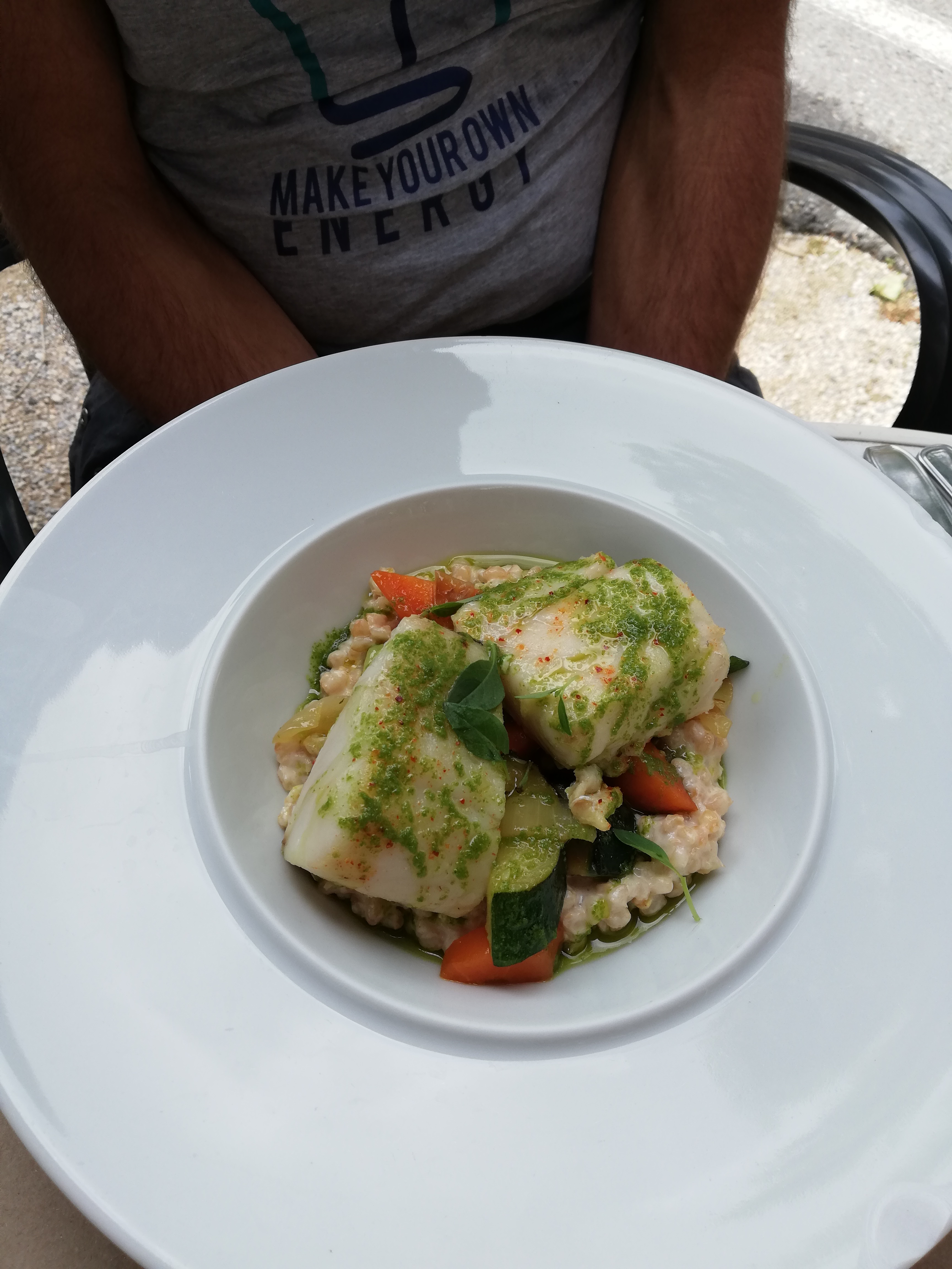 Une belle découverte : accueil et service souriant, une terrasse agréable en soirée, d'excellentes entrées tout en fraîcheur des produits, de bons plats, une belle assiette de fromages, un crumble ''frais'' qui manquait un peu de ''chaleur''.