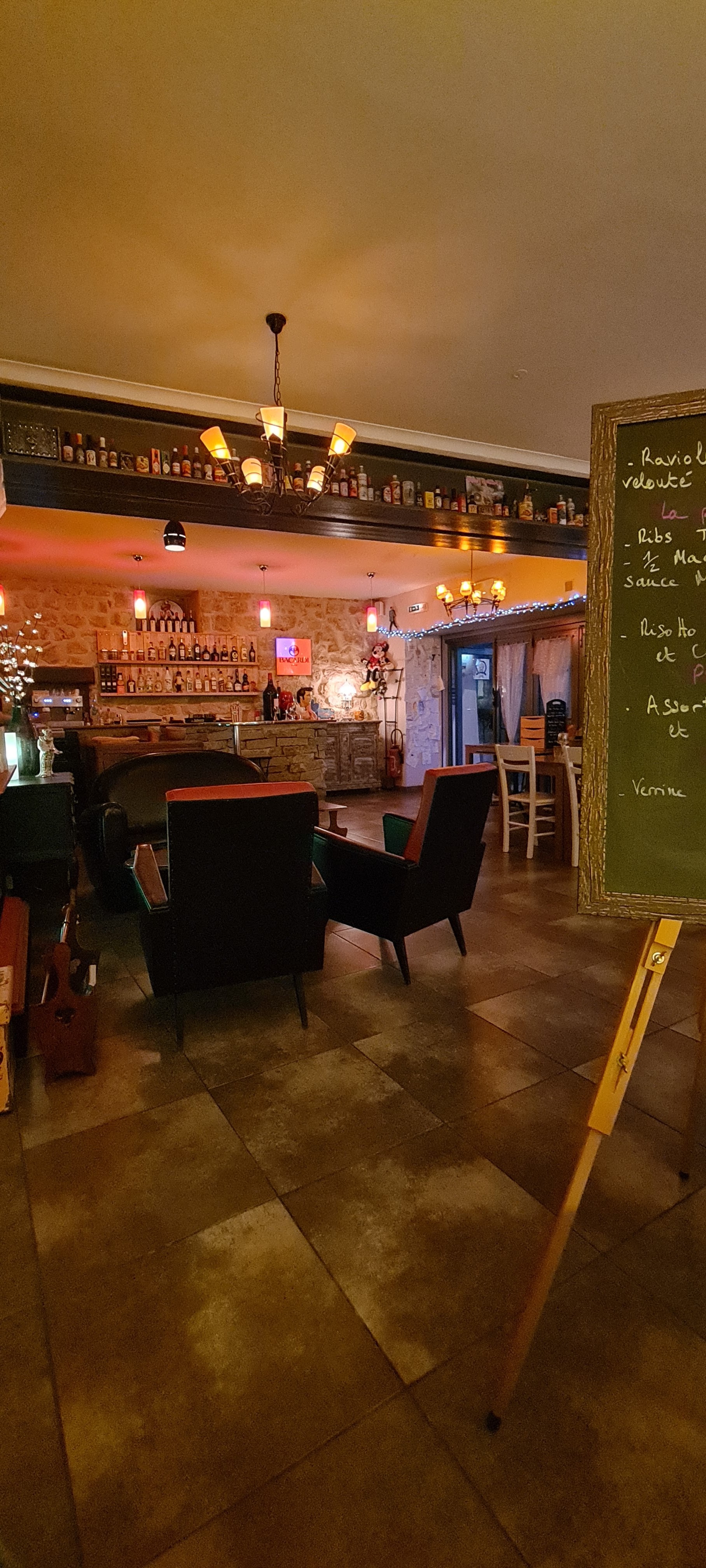 Resto avec une déco originale et agréable. Ambiante conviviale. Les plats sont très bons 😋 du choix dans la carte des vins locaux 👍 Je recommande vivement si vous souhaitez vous régaler et passer une bonne soirée. Une terrasse est disponible pendant les beaux jours au pied de l'église, où à été tournée des scènes du Petit Baigneur ⛵