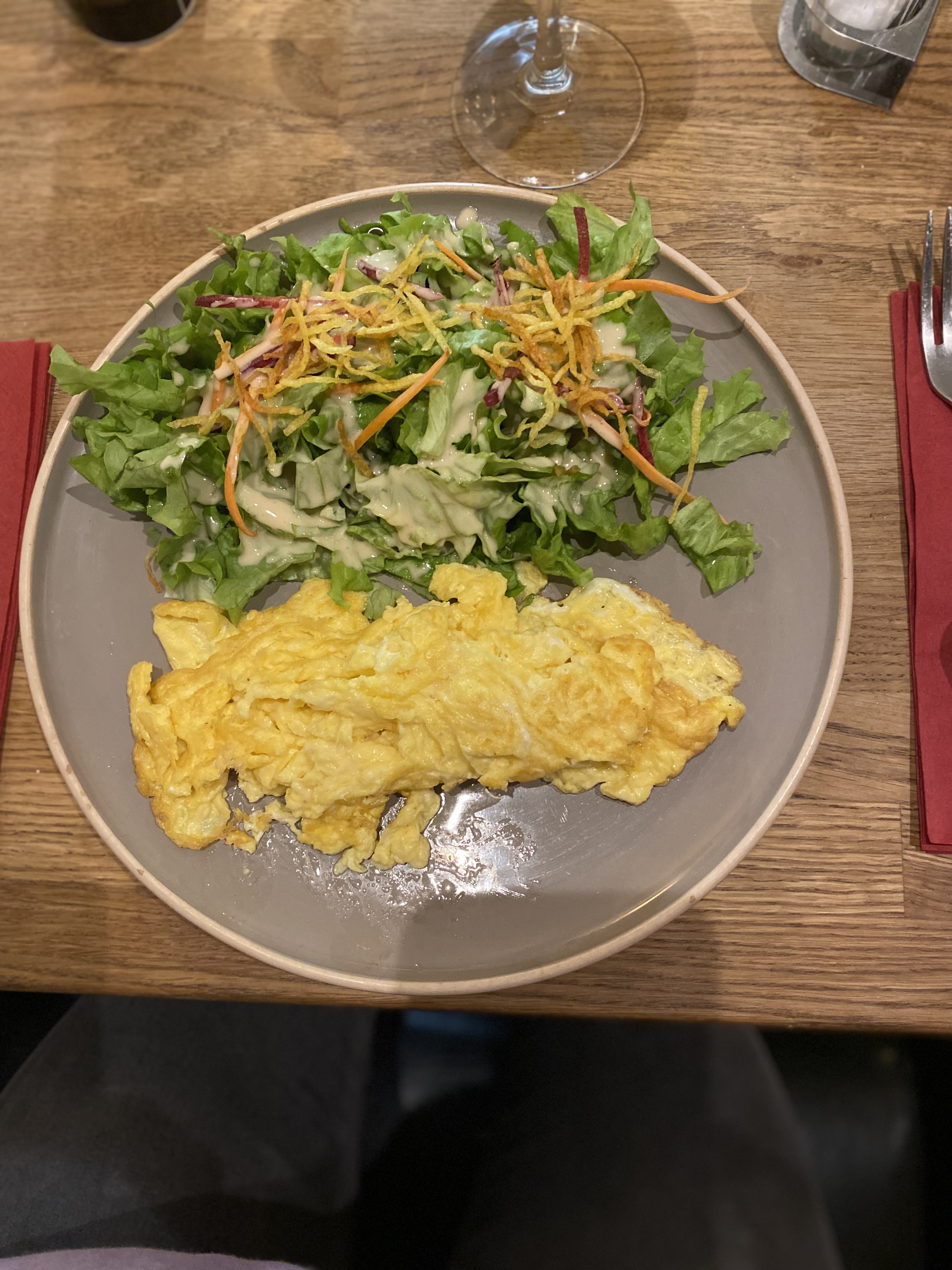 J'ai pris le saumon et ma femme a pris le plat du jour qui était du lapin. Les deux étaient cuits à merveille, surtout le saumon. Je recommande vivement cet arrêt. Un de nos plats préférés à Paris !