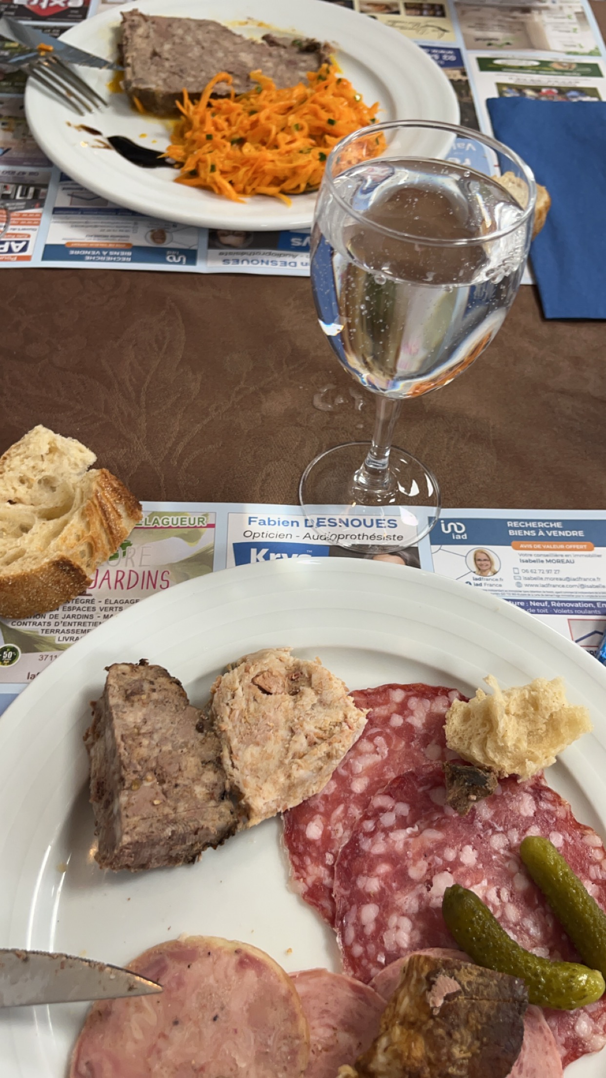 Repas médiocre Assiette charcuterie bonne mais pas bien présenté Plat rognons avec écrasé de pommes de terre Les rognons pas assez cui et et pas assaisonner l'écraser fade juste le dessert qui était bon Je ne recommande pas
