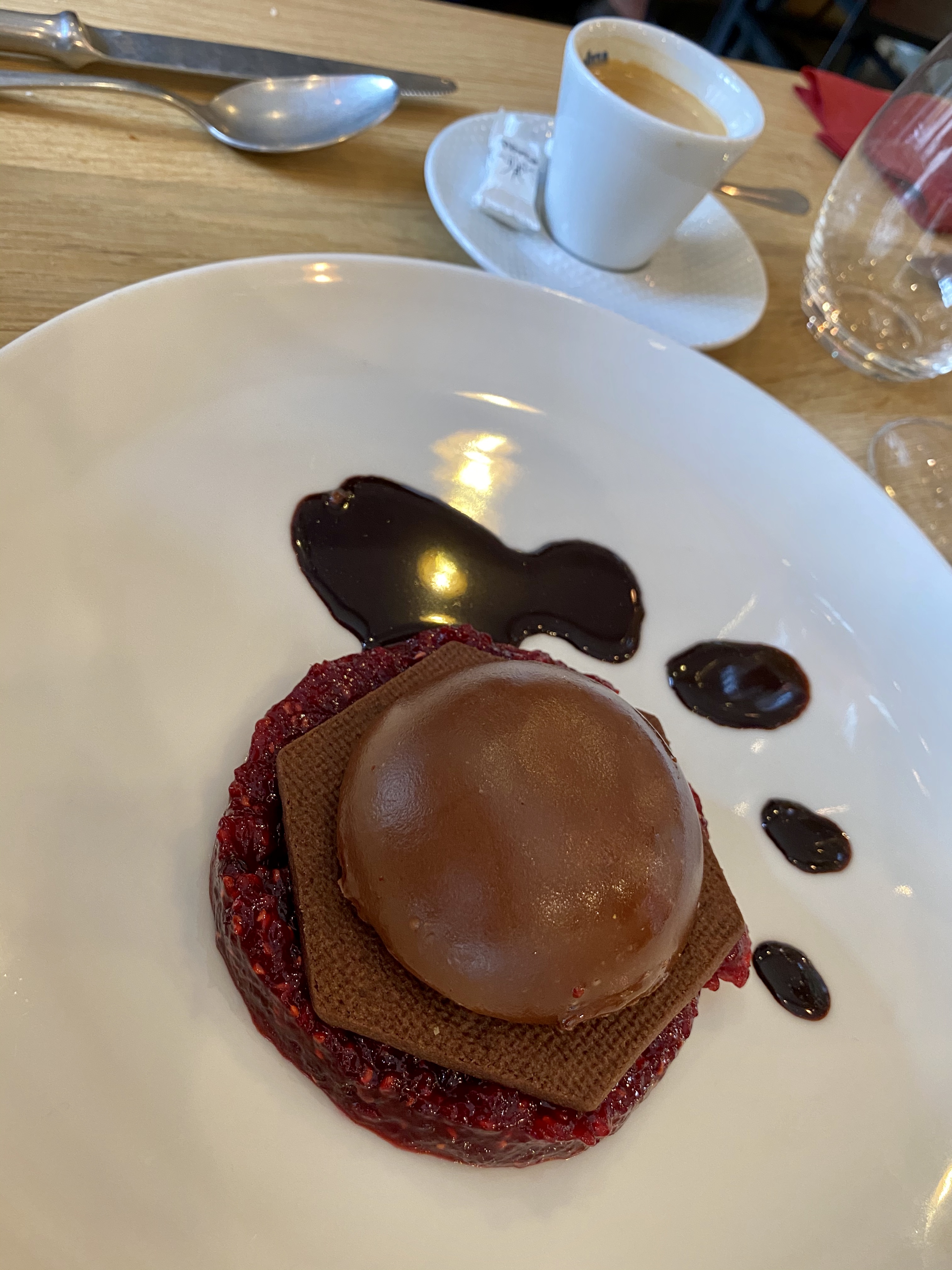 Beau resto, déco et ambiance sympas. Très belles assiettes, produits de qualité. Carte des vins correcte. Service à la hauteur. Bémol pour le dessert, un opéra beaucoup trop sucré , impossible à terminer.