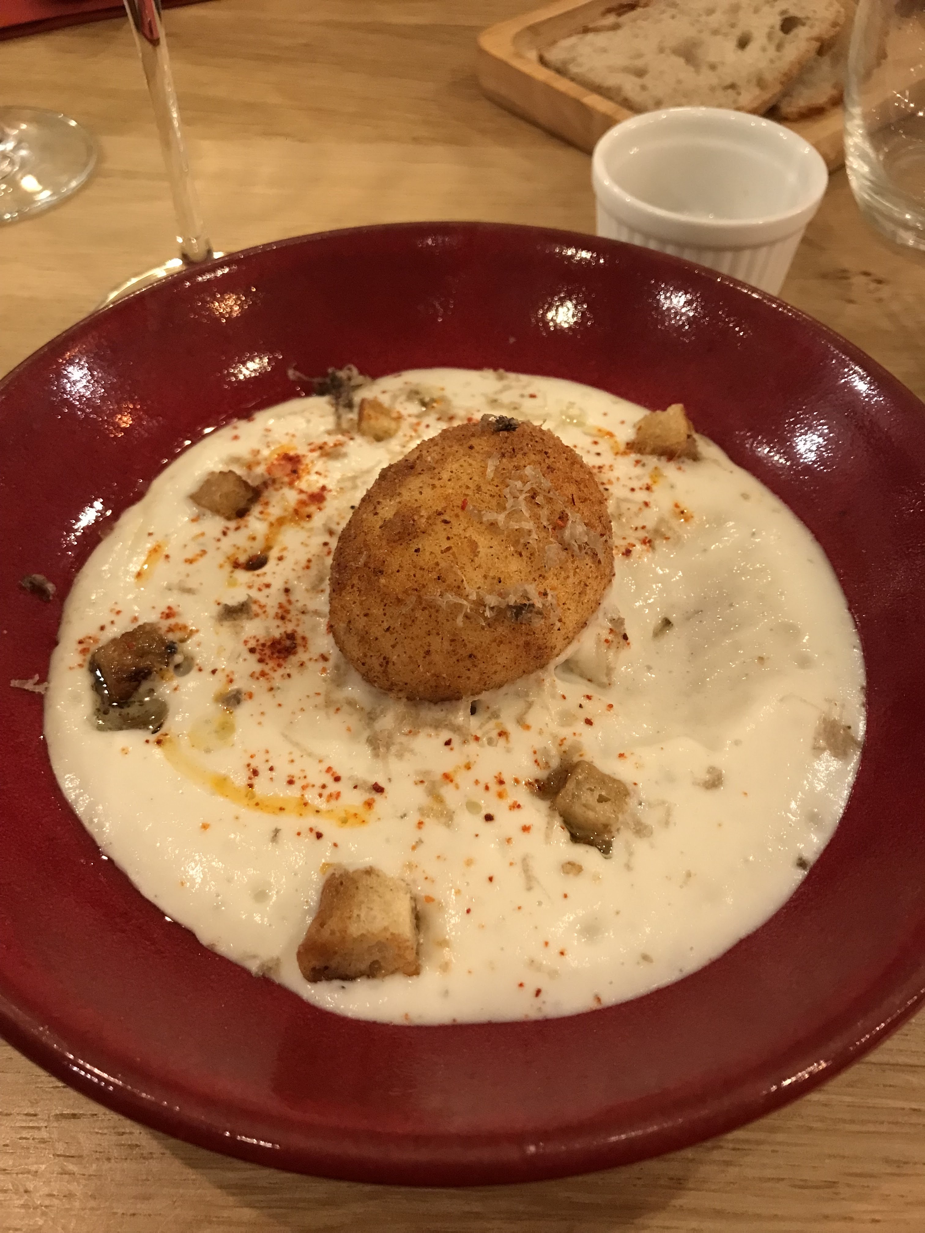 Une trouvaille inattendue... Petit bijou cosy aux créations d'exception ! Nous avons eu des croquettes fourrées à la crème de poireaux et un carpaccio de veau délicatement habillé de pesto, de flocons de piment et de champignons en entrée. Ensuite, nous avons eu un plat intéressant de foie de veau enrobé d'une sauce aux poivrons et piments persillés et un délicieux plat de filet. mignon servi avec une purée de patates douces agrémentée d'une délicieuse sauce ! Wow.. Je recommande vivement cet endroit !