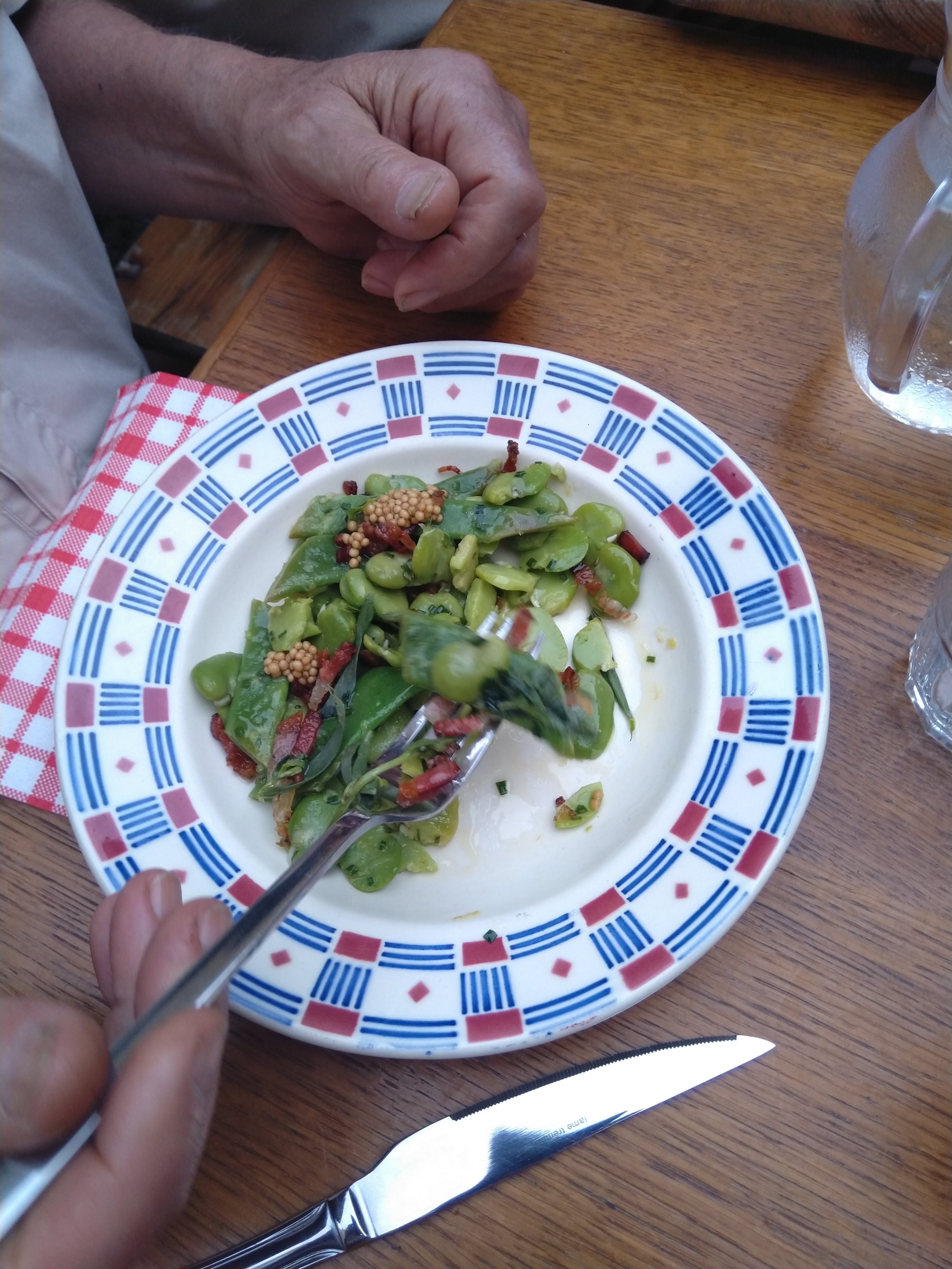 Asperges et œufs mimosa excellents. Un endroit charmant pour partager une bière sur la terrasse ou un bon vin. Je recommande à 100%