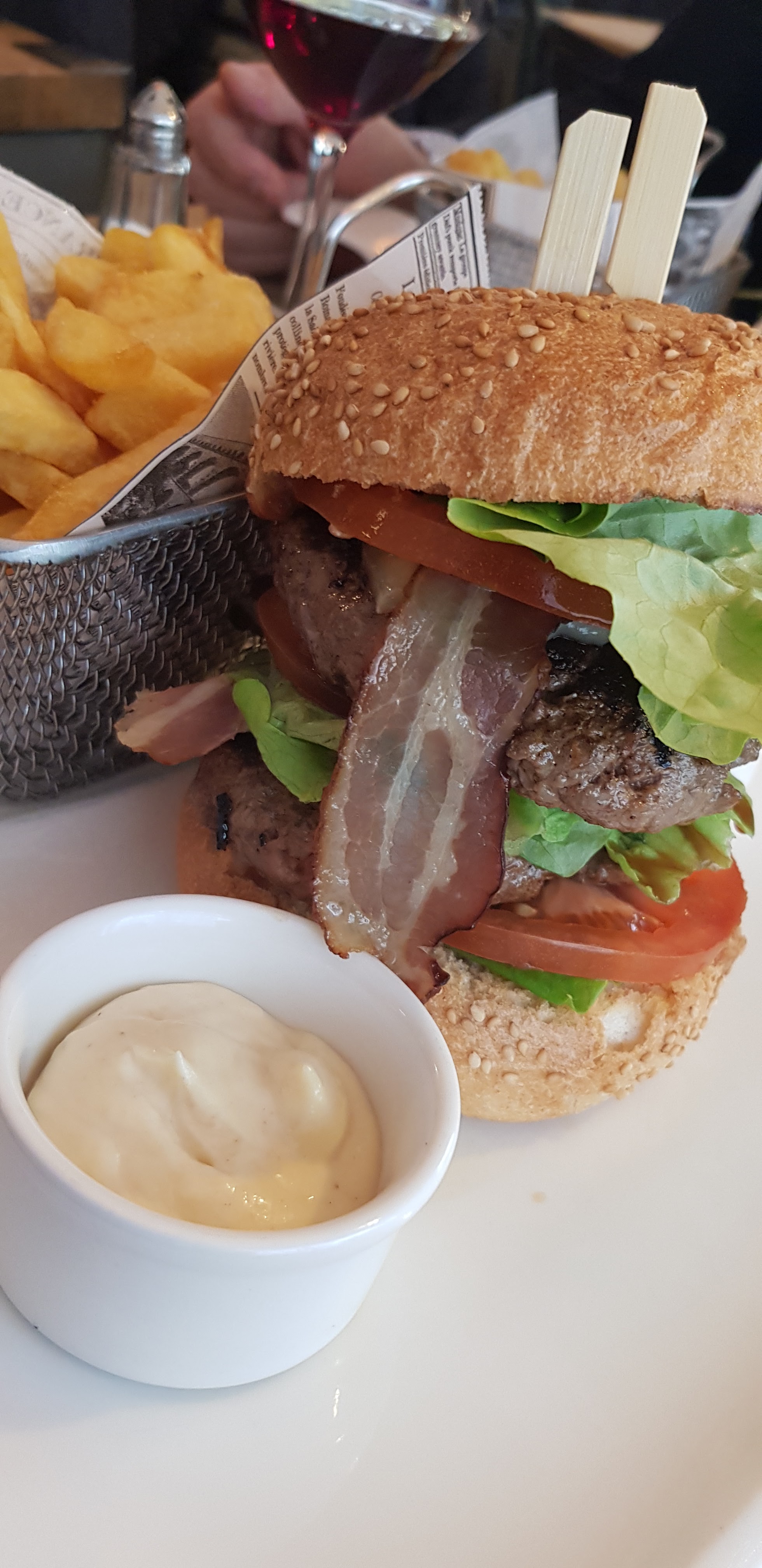 Déjeuner un midi. Endroit très sympathique, tarifs intéressants et très bons burgers, service aussi professionnel et réactif. De plus j'ai apprécié leur côté très commerçant et arrangeant en cas de léger souci. Je vous le recommande si vous souhaitez un endroit sans prise de tête pour déjeuner. Je vous conseille le burger alsacien.