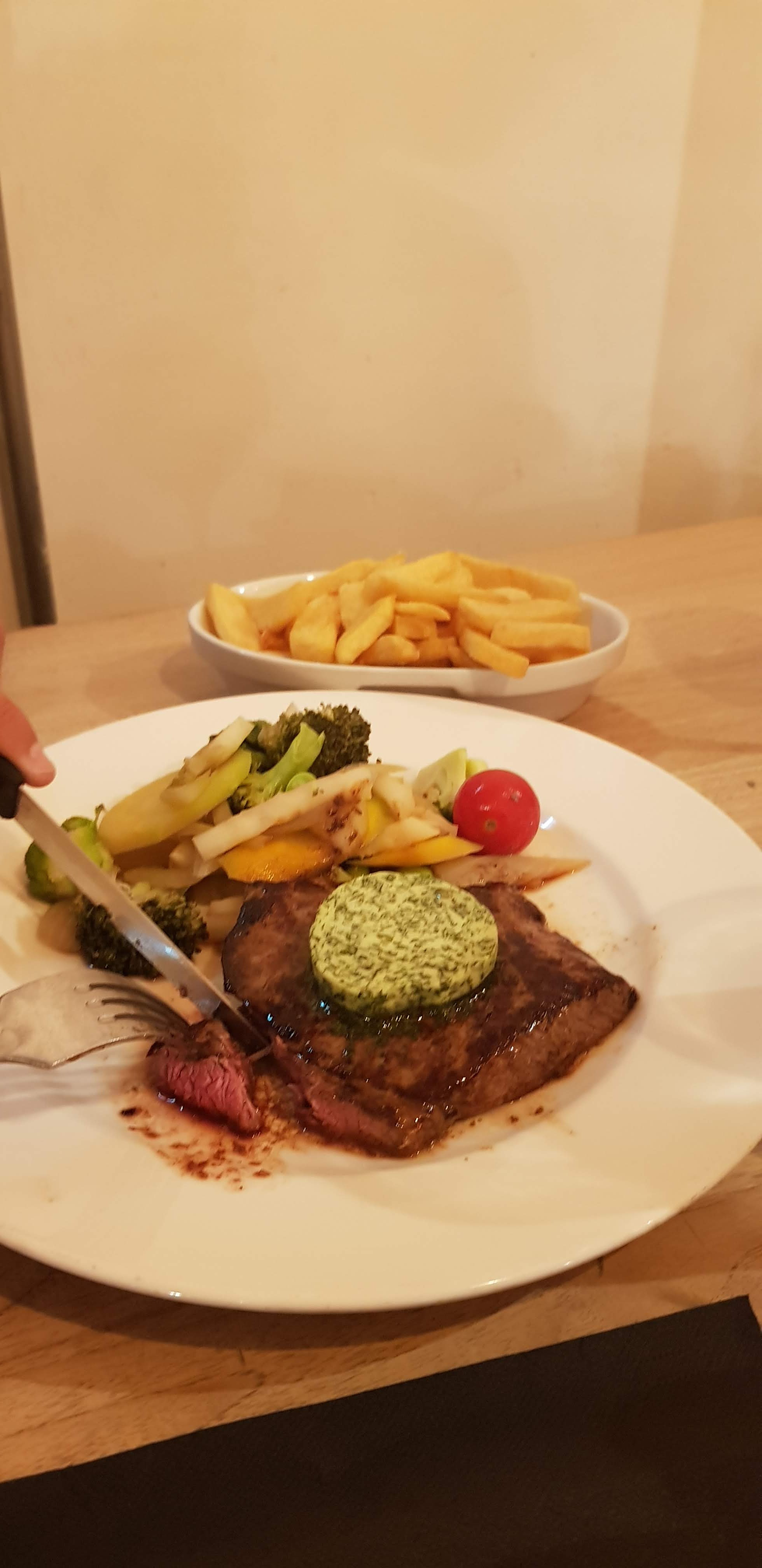 La nourriture était bonne, j'ai commandé une pièce de viande et elle était bien saignante comme demandé. Le tiramissu était excellent aussi. Les toilettes femmes sont propres. Petit bémol au niveau du service et de l'ambiance générale : les serveurs ne prennent pas de notes et sont venus nous demander plusieurs fois ce qu'on voulait. Aucun bonjour et aucune tenue. La musique était bien trop forte et on ne pouvait pas s'entendre parler. Je recommande seulement qu'à moitié.