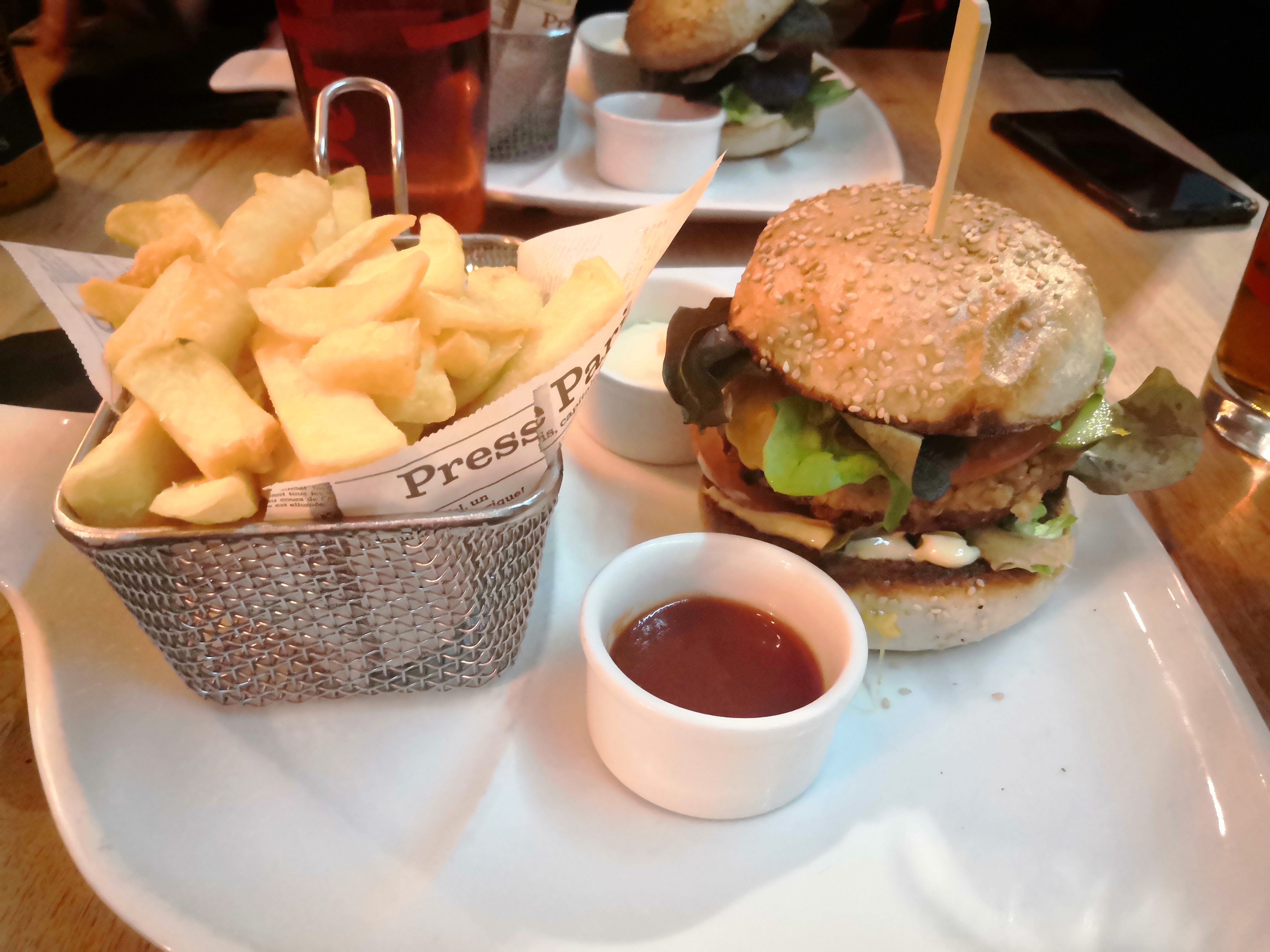 Les Happy Hour a des prix sympathiques dans un décor minimaliste industriel façon recup mais soigné, on aime! Une petite carte resto où tout à chacun y trouvera son compte (il y a aussi un burger veggie et des fish & chips) je reviendrai c’est sûr, même si c’est un peut excentré par rapport aux autres cafés-bars-restos, c’est bon de changer un peu.