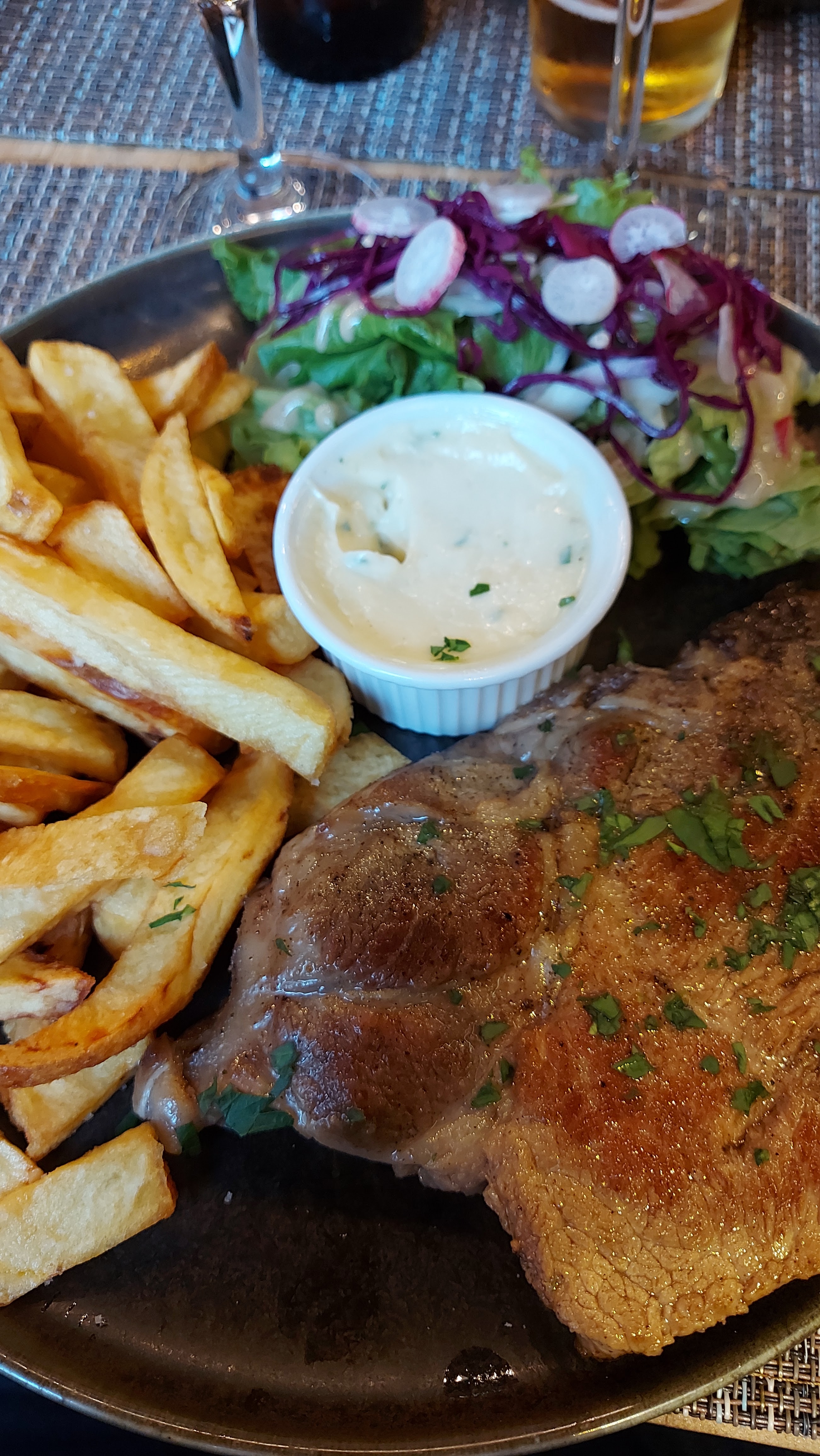Lieu totalement rethématisé depuis la fermeture de l'ancien kebab. Une entrecôte à la viande tendre, qui s'enlève juste avec la fourchette, servi avec des frites maisons et une sauce délicieuse préparée séparément: un régal ! On a hâte de tester les autres plats et planches apéritives.